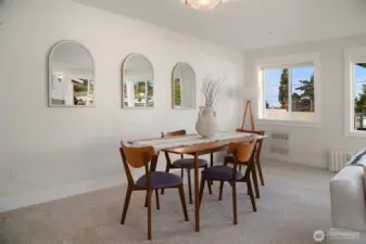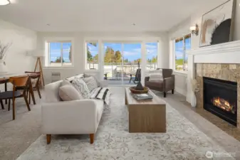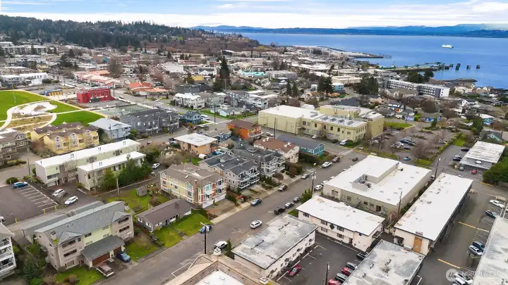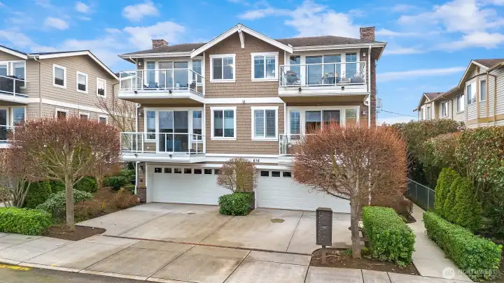 Prime walkable 2-bed condo in the heart of Edmonds Bowl w/ private 2-car garage & workbench. Sightlines of Puget Sound & Whidbey. Direct elevator access right to unit. Live steps from everything: Edmonds Center for the Arts, Civic Field, Farmer’s Market, & vibrant downtown core. Everyday living & entertaining is effortless w/ open-plan design. Updated kitchen w/ natural light from skylights, boasts Bosch SS appliances, granite countertops, pull-out drawers, & refaced cabinetry. Gas fireplace anchors the living area, framed by oversized windows & slider that opens to the view balcony. Primary w/ ¾ en-suite bath w/ dual sinks, WIC, & mini-split system for yr-round comfort. 2nd bed spacious. In-unit stackable newer LG washer & dryer. Fully modernized hydroponic heating & plumbing systems. Location, turnkey & views.