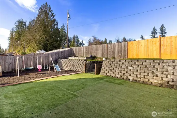 Move-in-ready gem in desirable Central Kitsap!This bright 4-bed, 2.25-bath home (~2,338 sq ft) blends modern style with functionality. Enter through a welcoming foyer to an open-concept layout: front living/dining area flows into a stylish kitchen with stainless steel appliances and breakfast bar, opening to a spacious living room with cozy electric fireplace—perfect for relaxing or entertaining. Sliding doors lead to a gazebo and a low-maintenance, fully fenced backyard oasis featuring artificial turf, dog run, play space, and tiered garden area. Upstairs: luxurious primary suite with walk-in closet and ensuite bath, plus three additional well-sized bedrooms. Prime location perks include top-rated Central Kitsap schools, quick commutes to Naval Base Kitsap, Bremerton, Silverdale, and the ferry, plus nearby shopping and dining. Best of all—a 40-acre public park with walking trails is just steps away at the end of the road. Modern comfort, practical outdoor living, unbeatable neighborhood—your Pacific Northwest dream home awaits! Schedule your showing today.