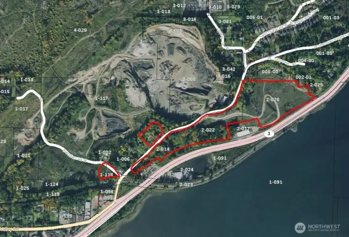 Site is Binding Site Plan approved for a office/retail/storage commercial center allowing 60,106sf of building area on the east 9.29 acres. The west 6.99 acres has additional commercial potential, but is not included in BSP. The site is a mined-out rock quarry with a sheer wall on the south boundary and Sinclair Inlet views to the north. All utilities, including storm, are available. The main access is off Sherman Heights Road.