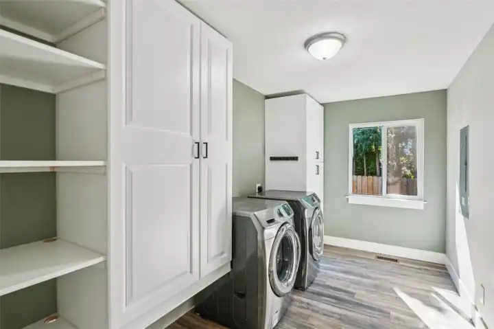 This 100-year-old farmhouse in Felida has been fully remodeled with a mid-century modern vibe, floor to ceiling windows, and an abundance of natural light. All new electrical and plumbing throughout. The open living and dining areas showcase an electric fireplace framed by a wood accent wall and built-ins. The kitchen features a built-in double oven, a gas cooktop/custom hood, and a large quartz island. A decorative door in the kitchen leads to an atrium style patio that also connects to the primary suite with a walk-in closet and luxurious ensuite bath. Two additional bedrooms, one oversized with two closets; a full bath and expansive laundry room offering exceptional storage. Unique touches include a root cellar and exposed beams in the kitchen enhancing the original farmhouse charm. Two-car garage, parking pad, carport, and extra large RV parking. Accommodates six+ vehicles. Large shed out back, space for a dog run and garden. Close to amenities and great schools.