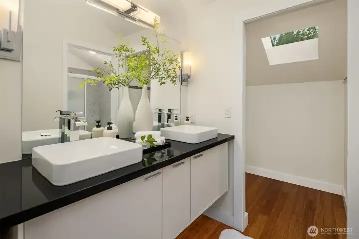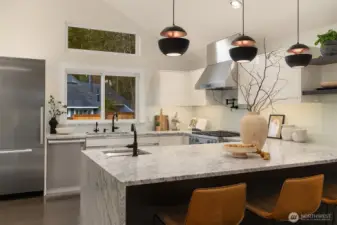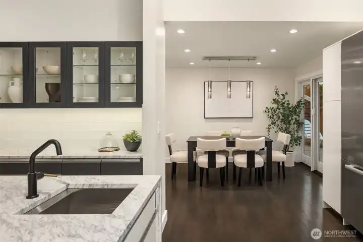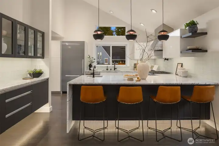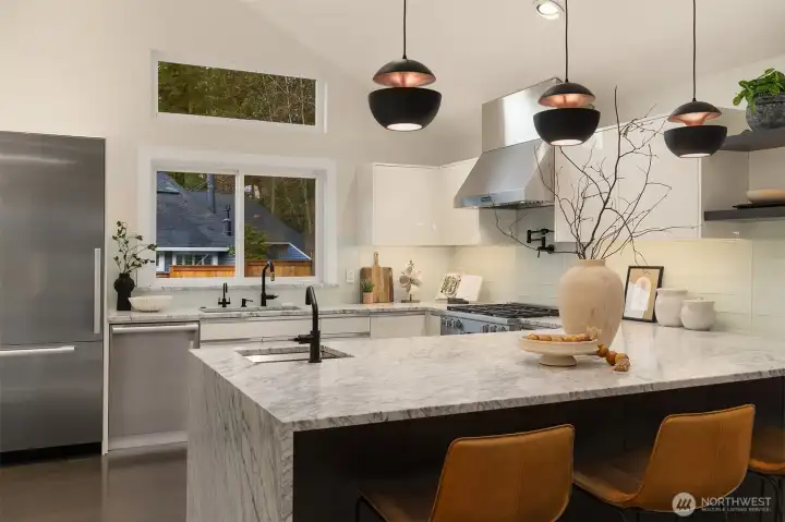 A redefined Kirkland Highlands residence, elevated through a complete, high-caliber renovation. A true showcase of design and craftsmanship, the home centers around a fully appointed Miele chef’s kitchen, where top-of-the-line appliances, Carrara marble slabs, and custom lacquer cabinetry create a space both luxurious and refined. The architectural floor plan offers a private primary suite upstairs, while two secondary bedrooms are positioned on the main level. Bathrooms are tastefully finished with quartz countertops, modern fixtures, and curated tile selections that enhance everyday living. From the dining room, doors open seamlessly to a private backyard retreat, an expansive outdoor setting designed for effortless indoor-outdoor living and entertaining. Residents also enjoy access to private neighborhood tennis and basketball courts. It’s a residence that delivers both comfort and convenience. Located minutes from the newly improved I-405 corridor, Downtown Bellevue, Kirkland’s waterfront, and award winning schools. The Forbes Creek community HOA provides full exterior maintenance including roof, paint, landscaping, and year-round grounds care, highlighted by a newly installed 50-year roof, allowing homeowners to live with ease.