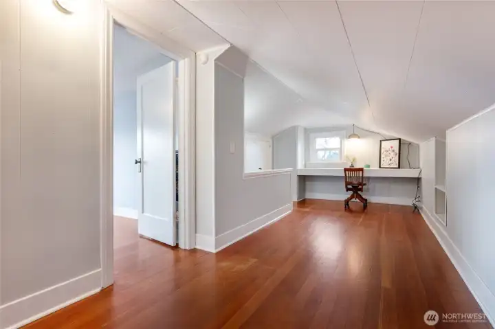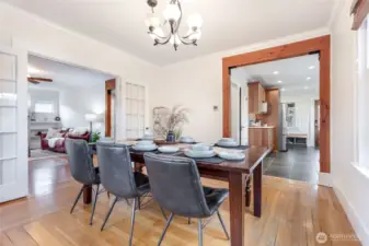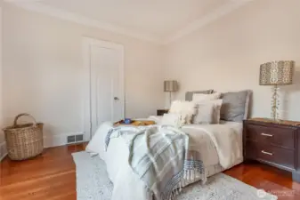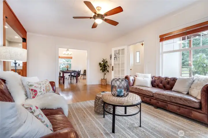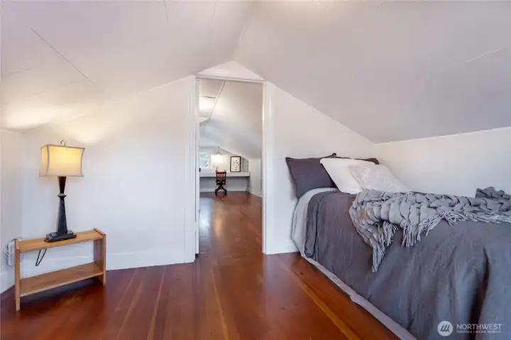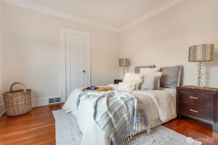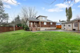 Charming and refreshed, this 1922 single-family Craftsman sits on a desirable double lot in the Cornwall Park area of Bellingham. The large, fenced yard offers space to relax or to add up to two ADUs (buyer to verify). Inside, original hardwoods and woodwork meet modern finishes, including a custom kitchen with quartz counters and upgraded stainless-steel appliances. Two bedrooms are located on the main floor, both featuring walk-in closets and one also has an en-suite bathroom. Upstairs, you’ll find two additional bedrooms plus a built-in workspace. The unfinished basement includes a washer, dryer, and laundry sink and offers abundant storage. A covered porch detached single-car garage, alley parking, and a garden shed add convenience and privacy. With a newer furnace, heat pump, and on-demand hot water, this home blends historic charm with contemporary upgrades near parks, dining, and shops.