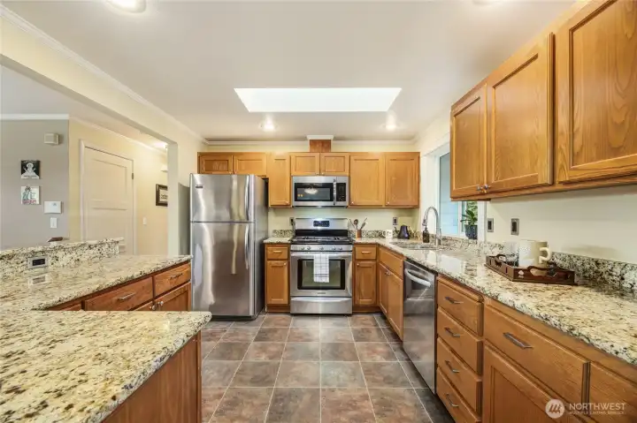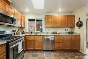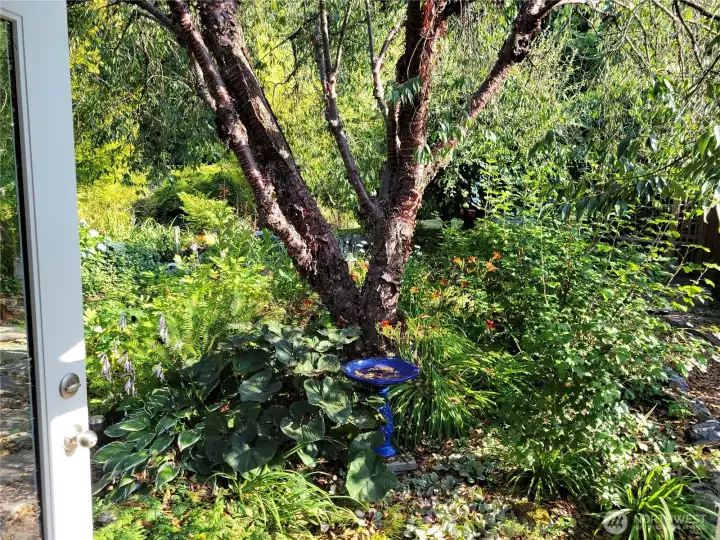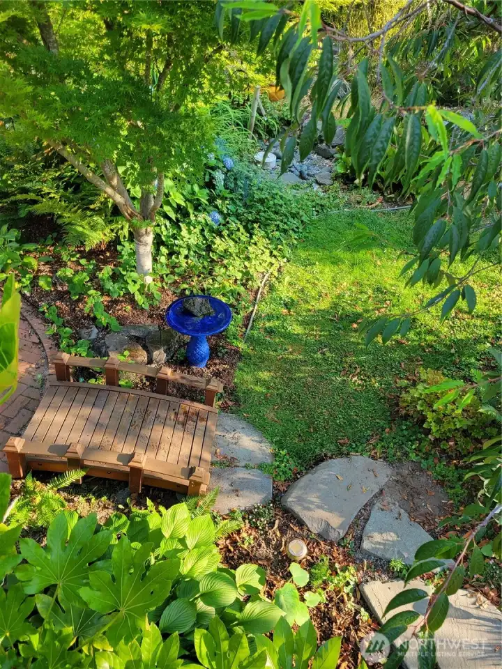 Nestled in a quiet cul-de-sac, this warm and welcoming split level home lives large. Light and bright living room with gas fireplace, dining room with slider to perfect deck for outside meals with birds singing, and a chef's kitchen that invites gatherings, and herbs picked fresh from the garden. 3 bedrooms including the primary with walk-in closet and private bathroom complete the main floor. Downstairs is a big multi-purpose room: media space? home gym? ideal work from home space? even guest space! Laundry room combined with 1/2 bath. And a beefy 2 car garage with electric vehicle charging outlet and plenty of extra storage space. But the REAL star of this property is the glorious backyard. A true paradise, the gardens come to colorful and lush life in the Spring. The modern "Om Home" shed provides the perfect meditation retreat, yoga studio, or tranquil office with glass doors and windows facing the garden oasis. Plus, and additional insulated storage shed at the back of the property. Snuggle into this idyllic home for the Winter and emerge into the Spring and Summer with the promise of a magnificent sylvan outdoor property. All just moments from the Lynnwood Light Rail Station, Interurban Trails, and all the amenities at Alderwood!