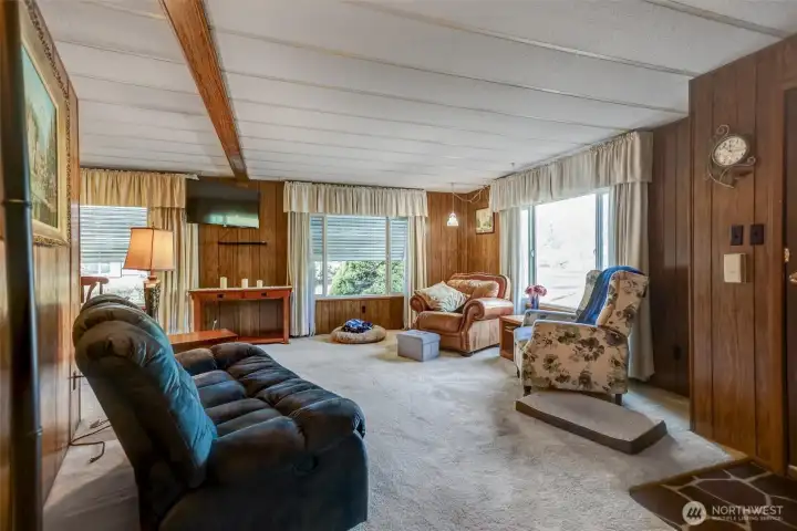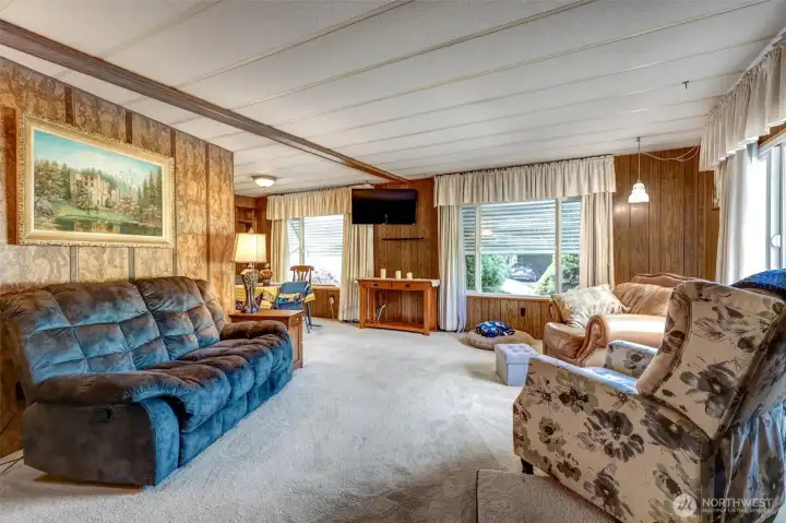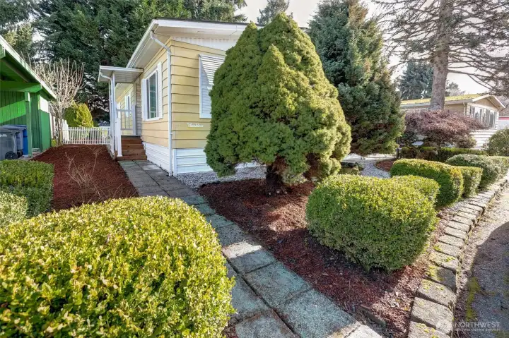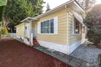Welcome to this well-maintained manufactured home in the desirable 55+ Twin Flags Mobile Home Park in Puyallup. Enjoy affordable living with space rent of just $675/month, including water, septic, and garbage—significantly lower than many nearby parks. The floor plan offers two bedrooms, 1.75 bathrooms, a spacious kitchen, comfortable living and dining areas, plus an additional flex space can be for a sitting room or home office space. Home windows all updated with double pain vinyl windows. Outside features include a large park-maintained carport, room for up to four cars under carport and in the driveway, a fully fenced backyard is gorgeously landscaped. Home has a generous covered porch, and a covered patio in the backyard which perfect for entertaining. Conveniently located near grocery stores and everyday services, this home offers comfort, value, and convenience in a peaceful community. Dogs and cats allowed, subject to restrictions.