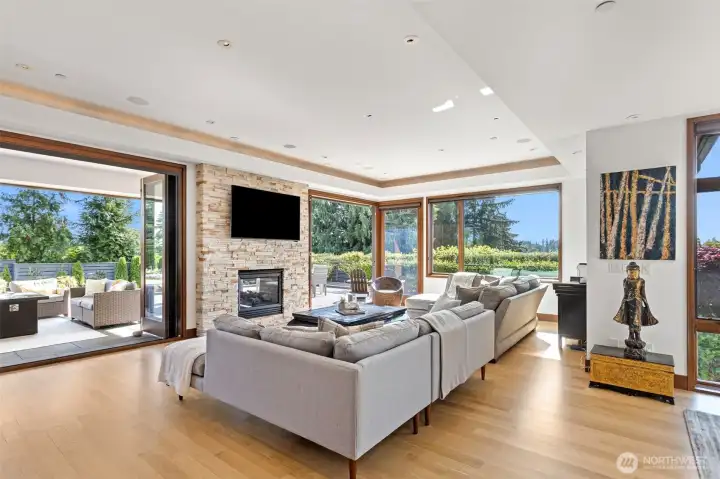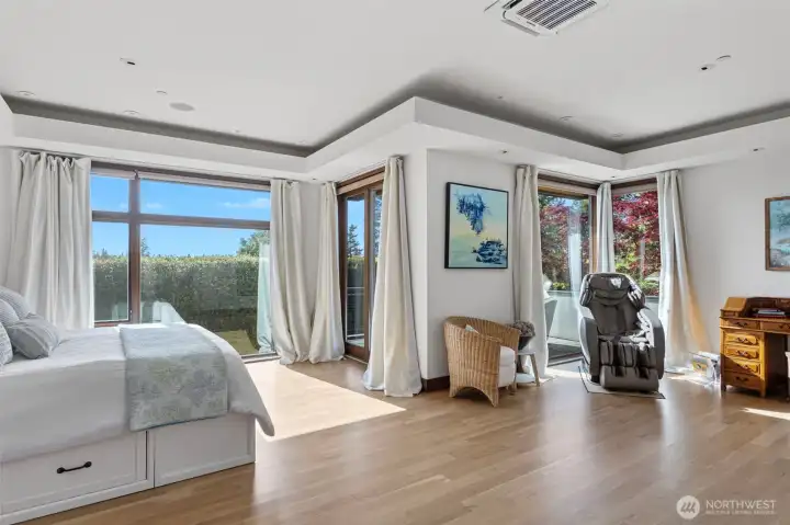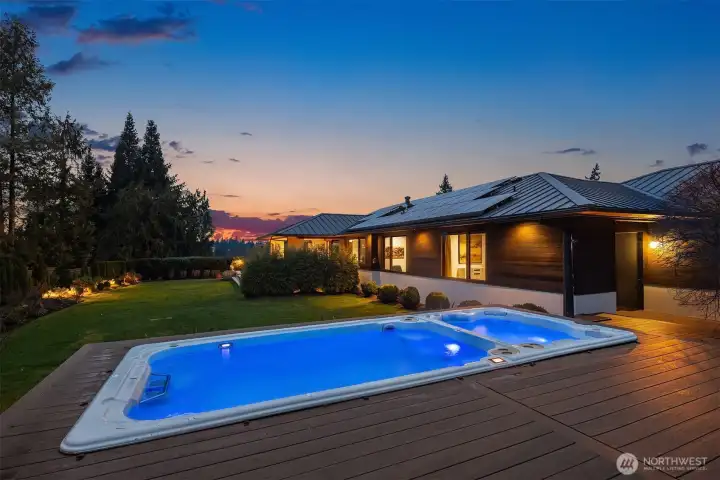Private modern sanctuary half+ acre manicured lot in the heart of Clyde Hill. Rare combination of privacy, flat usable yard, and premier West Bellevue location. Expansive windows fill the home with natural light and showcase Olympic Mountain sunsets. Chef’s kitchen features full-size Sub-Zero, dual Sub-Zero drawers, two Miele dishwashers, and double Wolf ovens. Open great room with stackable glass doors leads to a covered outdoor living room and private backyard with swim spa—ideal for indoor–outdoor living and entertaining. Five bedrooms and six baths, including main-level primary suite, second main-level bedroom, and dedicated office. Additional features include generous auto court, EV charging, solar power with 20kW battery backup, and turnkey systems throughout. Located minutes from Downtown Bellevue’s world-class shopping, dining, and entertainment. A rare move-in ready Clyde Hill home offering privacy, modern design, and exceptional location.
