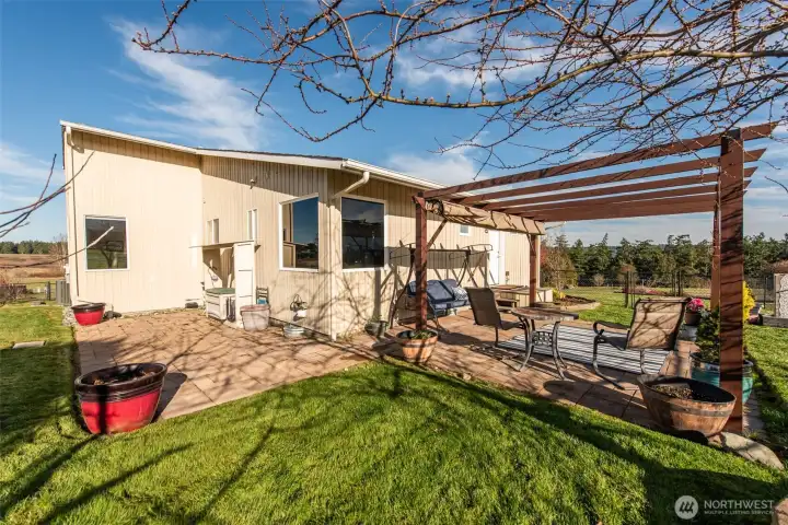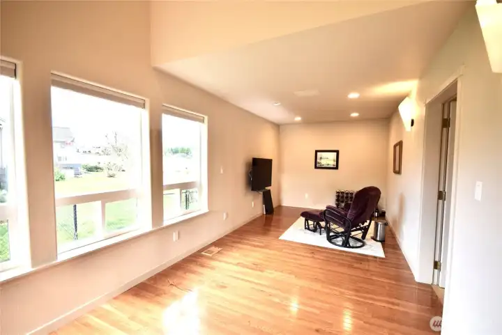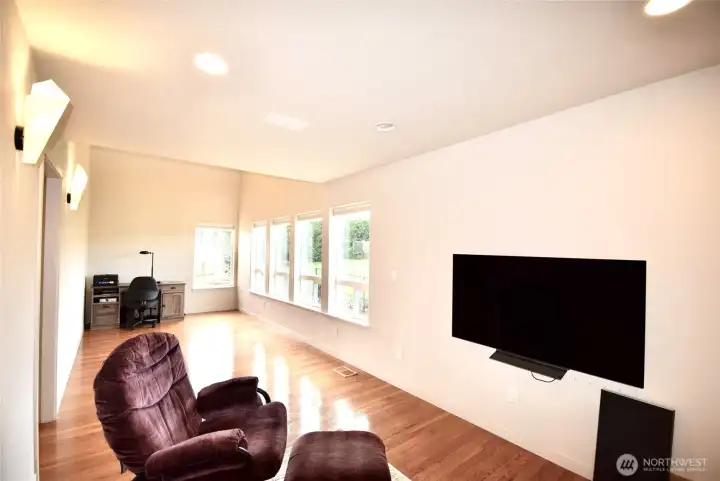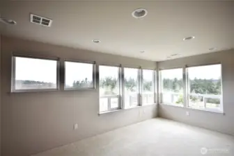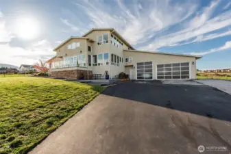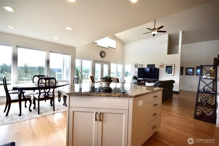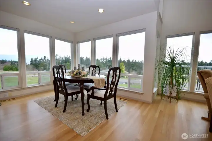 Stunning architecturally designed home with partial views of Sequim Bay, The Strait of Juan de Fuca and mountains. Partially fenced peaceful acre is surrounded by lots of open space. Home has incredible wall windows that bring the outside in with lovely views out each window. Large vaulted ceiling living room has French doors to deck and is open to kitchen & dining area. Upstairs loft overlooks the living room, has lovely views and provides additional space for office, living or just looking at the Strait. Main level has primary bedroom with door to sunny patio area. En suite guest room is also on the main level, with laundry room & large bonus room that could be office, hobby, exercise or media room. Lots of options. Upstairs has loft, bedroom, & additional office/flex space. New solar panels. 3 car garage has one tall door for RV. Easy care landscaped yard.Don't miss this opportunity to live in all this light and space.