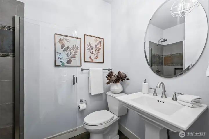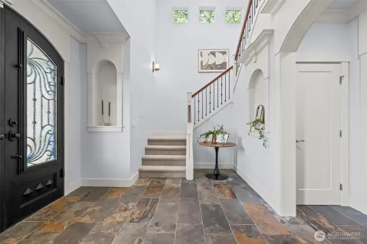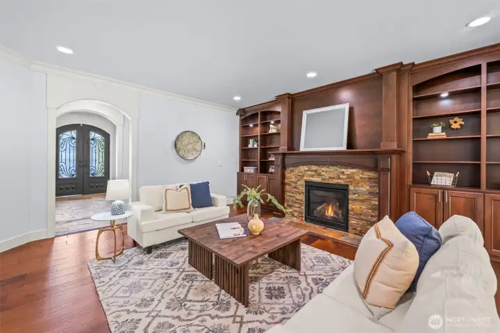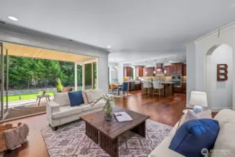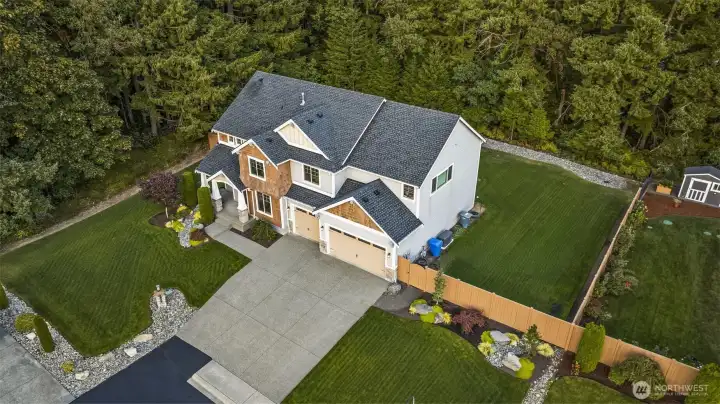 Tucked within the gated community of Trinity Ridge, this Rosedale residence stands apart for its rare combination of sophisticated functionality and genuine comfort. Occupying one of the neighborhood's premier lots, the home offers a flat, fully fenced yard that remains remarkably private against a lush wooded backdrop. The interior is defined by an inviting, cohesive palette of rich wood tones and soft natural light. The spacious great room is designed for relaxation, featuring a signature Nano Wall and additional slider that merge the living space with a coveted PNW covered patio. This outdoor retreat, complete with a gas fireplace offers a quiet space to unwind regardless of the season. The kitchen is a central hub, anchored by a massive 60-inch refrigerator/freezer and expansive island. The primary suite is a generous, quiet oasis, positioned at the rear of the home to maximize privacy. Versatility is provided by a main-floor bedroom and adjacent 3/4 bath, along with a bright, vaulted bonus room upstairs. Meticulously equipped, the home features a supersized 5-car garage with new epoxy floors, a whole-house automatic generator, and a comprehensive water filtration system. Perfectly located just minutes from the Cushman Trail, local parks, and the downtown Gig Harbor waterfront, this property offers a refined lifestyle where every detail—from the warm aesthetics to the high-end infrastructure—has been thoughtfully considered