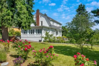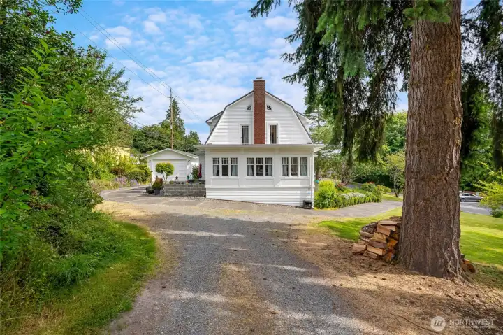 [KILLIEN DUTCH COLONIAL HOUSE CIRCA 1924]. A rare historic property that shines with classic craftsmanship and modern updates. Grand entry w/open stairway set a welcoming tone, leading to soaring ceilings & spacious rooms throughout. Main Floor Features: Formal dining, kitchen w/shaker-style cabinets, quartz countertops & SS appliances. Expansive sunroom perfect for capturing morning light, bedroom/den, convenient 1/2 bath and laundry room. Upper Level: 4 generous sized light filled bedrooms & Full bath. Additional Spaces: Unfinished 1232 sq ft daylight basement ideal for storage or finishing as extra living space. Detached 1056 sq ft garage w/soaring 14+ft ceilings & electric car charger. Separate 432 sq ft structure w/endless possibilities, whether for a workshop, studio, office, or MIL conversion. Home sits on an unusually LARGE .39-ACRE corner lot, offering mature gardens, open green space, and fruit trees. Ample parking, including RV parking options, plus quick access to major highways and amenities