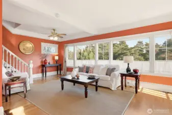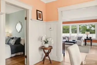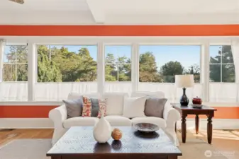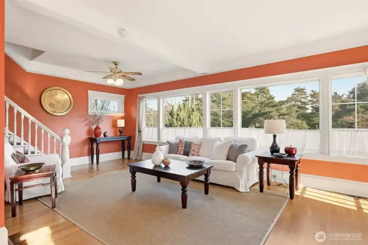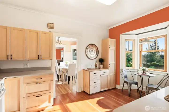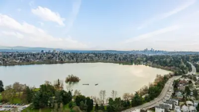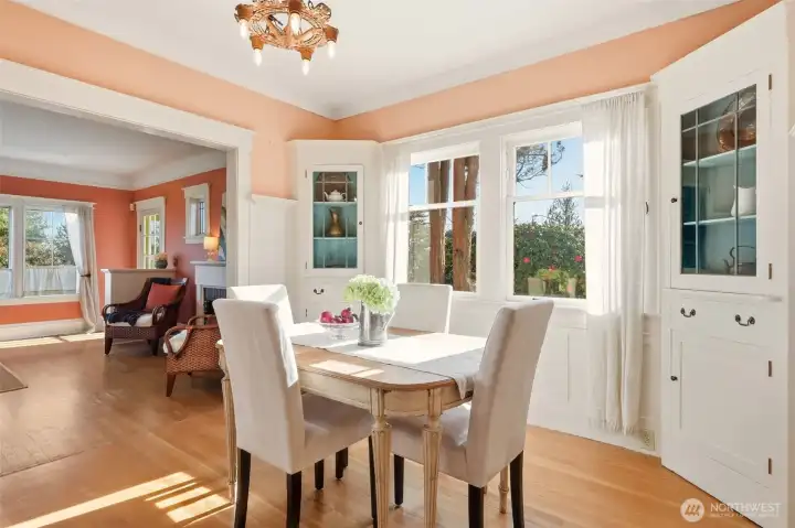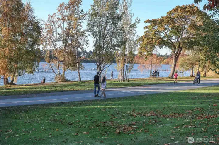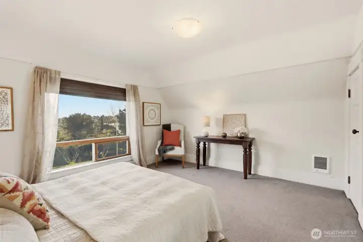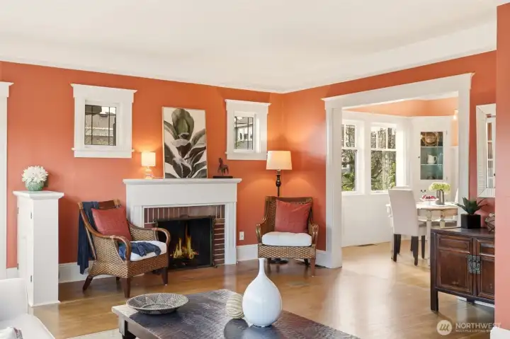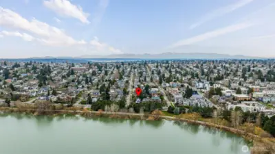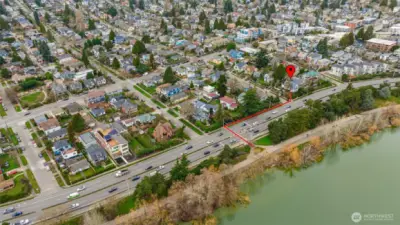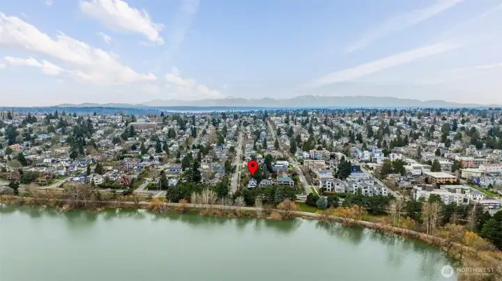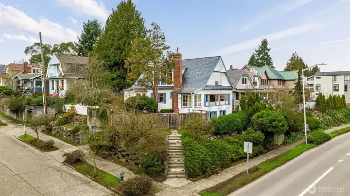 A classic Green Lake home. Set on a bright corner above the street and looking out toward Green Lake, the home feels calm. Balancing character with convenience, it is the kind of place that immediately settles you. Lush greenery surrounds the house. Inside, the inviting kitchen opens naturally to the light-filled dining and living areas offering space that provide the perfect setting for weeknight dinners, hosting friends by the fire, or slow weekend mornings. A main floor bedroom and full bath add flexibility for home office, guest stays, or future plans. Upstairs boasts two large bedroom, a light-filled office/bedroom plus full bath. Downstairs, the light-filled studio or MIL space offers room to grow into, whether that means a creative studio, guest suite, or extra hangout space. Surrounded by mature greenery, the outdoor areas offer a private oasis, perfect for morning coffee, evening drinks, or gathering under the trees. Green Lake across the street offers liveliness, community, and nature all right outside your door. With an easy commute to SLU, Downtown, Fremont, and Ballard, you can enjoy the luxury of being home soon after work while others are still sitting in traffic. Warm, well loved, and full of enduring charm, this is a home that supports how you live now, while giving you flexibility to evolve over time. Great light, and a true sense of comfort make it a place you will love coming home to. Welcome home.
