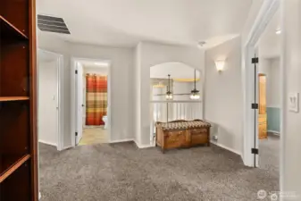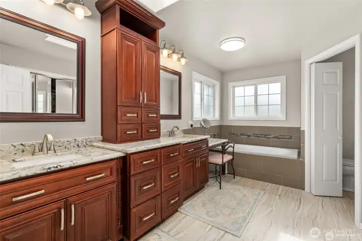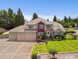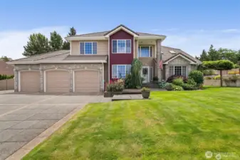 Welcome home to this exceptional 2-story home on over a half acre in the quiet, gated community of Norwood Estates — where privacy, comfort, and everyday luxury come together. A grand entry opens to inviting formal living spaces and a dream gourmet kitchen with island and eating area, designed for both entertaining and daily living. The vaulted-ceiling family room, filled with natural light and anchored by a stunning gas fireplace, creates an impressive yet welcoming gathering space. Enjoy beautiful mountain and territorial views from multiple locations throughout the home and property, adding to the sense of serenity and connection to the outdoors. Retreat to the luxurious primary suite featuring a soaking tub, walk-in shower, and generous walk-in closet. Three bedrooms upstairs plus a versatile lower-level den/office offer flexibility for work-from-home or multi-generational living. Thoughtful craftsmanship and designer touches are evident throughout. Step outside to beautifully maintained grounds with an expansive patio, hot tub, putting green, outbuildings, and tranquil water feature — your own private retreat. Heat pump with A/C, built-in alarm and vacuum system, RV parking, and Puyallup Schools. Prime location with quick, easy access to I-5 for a smooth commute while remaining tucked away in a peaceful setting.