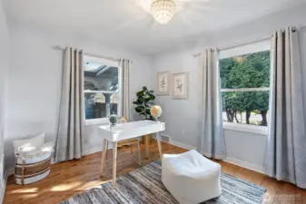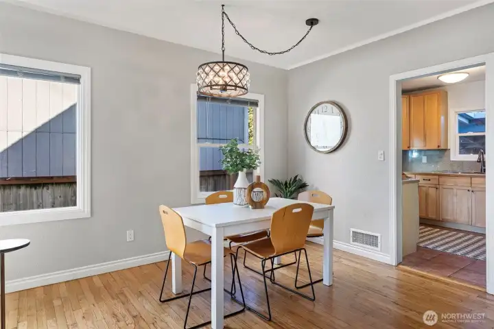 Classic charm meets everyday functionality in this beautiful 1940s home on a corner lot, complete with a white picket fence and oversized detached 2-car garage. Inside, you’ll appreciate the spacious, open feel with 4 bedrooms and 1.75 baths, including a private primary suite with its own en-suite bath. The light-filled living and dining areas flow seamlessly, creating the perfect setup for gatherings both large and small. The kitchen offers ample storage and workspace, making daily living easy and efficient. Original character shines throughout with built-ins, coved ceilings, and hardwood floors, giving the home warmth without sacrificing modern comfort. Step outside to a large covered patio and backyard fireplace - an inviting space for year-round entertaining, summer barbecues, or cozy evenings. The corner lot provides added privacy and room to spread out, while the oversized detached garage offers flexibility for parking, hobbies, or additional storage. Conveniently located just minutes from I-5 and Pacific Ave, making commuting and everyday errands simple and accessible. Comfortable, classic, and ready to call home!