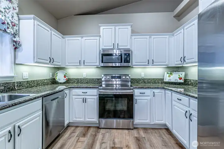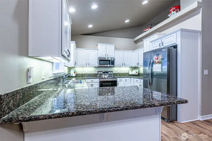 Welcome home to this beautifully well maintained 1,852 square foot Rambler! This 3 Bedroom, 2 bath home, has been updated inside & out. You’ll find durable laminate flooring entering the vaulted ceiling entryway, updated kitchen with newer stainless steel appliances. Open floor plan with a cozy living & dining room, with a large bay window, vaulted ceilings & gas fireplace! Spacious Primary suite offers the comfort of a 5 piece private bath, & huge walk-in closet with built in drawers & shelves. Low Maintenance fully fenced back yard with Gazebo covered Hot Tub, Trex decking, raised flower beds, & storage shed. 2 car garage includes storage shelves & workbench as well as overhead storage. Home amenities include - Solar Panels, New Fridge, New Gas water heater, 3 year old Heat Pump & Furnace, updated crawl space, 4 year old roof, & Hot Tub.