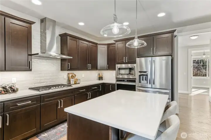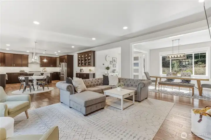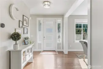 The best blend of privacy and community, this home feels like a true retreat, tucked down a private drive in the close-knit, gated Cedar Hollow community of just 25 homes. Set on a half-acre between protected greenbelts, the property provides rare tranquility with preserved wetlands both in front and behind the home. A meticulously maintained, one-owner residence, it has been thoughtfully upgraded, including professional landscaping with fruit trees and raised garden beds, Gemstone soffit lighting, Wi-Fi–enabled irrigation, backup generator hookup, and a secluded hot tub. Designed for effortless living and entertaining, the main level features a beautiful kitchen centered around a generous island and open layout extending to the living and dining rooms. The living area flows seamlessly to a covered deck with an outdoor fireplace for year-round enjoyment. Cozy fall evenings, summer dinners, and quiet mornings all overlook the expansive yard. A main-floor office and a functional mudroom connecting to the finished 3 car garage add everyday convenience. Upstairs, the serene primary suite includes custom closet built-ins and an attached bathroom, joined by 3 additional beds, laundry room, extra bath, and a versatile bonus room. Tucked away, the driveway offers ample guest parking, while the neighborhood features a scenic lake and tranquil walking trails. Just beyond, enjoy outdoor activities along the Skykomish River and hiking at Lord Hill, Wallace Falls, and Cherry Creek Falls.