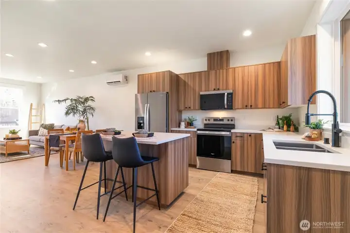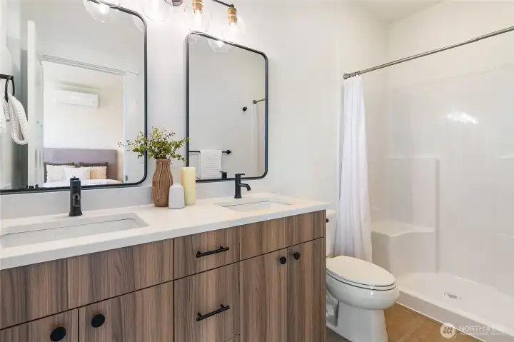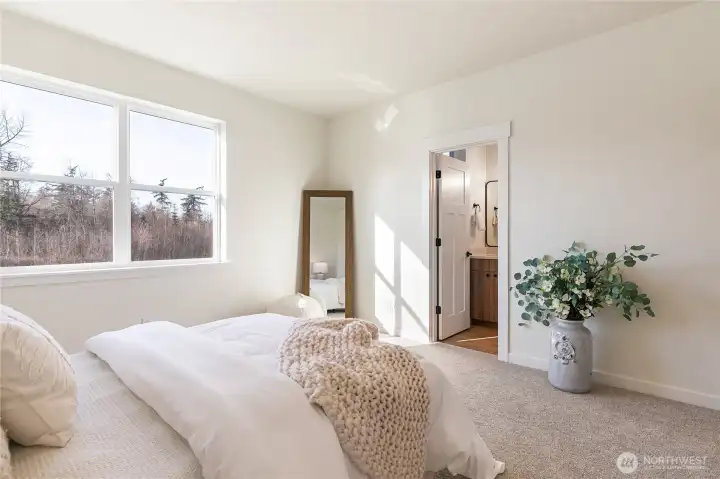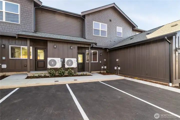 You can't beat this new construction home for under $500K! Welcome to this beautiful townhome in Trailside, offering fantastic views and privacy along the pond and greenery! The 2-bedroom plan includes a 2-car driveway, high-end & warm finishes throughout, fenced front yard, and serene pondside setting. The main floor offers a spacious open floorplan with light-filled great room, half bath, and kitchen with quartz counters, wood cabinetry, and stainless appliances. Upstairs, enjoy two large primary suites with en-suite baths and walk-in closets, plus laundry. With ductless heat/AC, 9-ft ceilings, premium flooring, outdoor storage, and more. This home is move-in ready and waiting for you. No HOA dues until 2027!