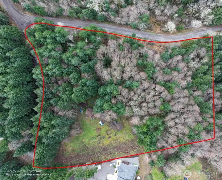 Welcome home to this cozy cabin on a forested 5 acres in the gated McIntosh Ridge community. This small but functional space includes a great room with vaulted ceilings and plenty of natural light, a small kitchen, 3/4 bath, as well as a loft for sleeping or storage. Woodstove provides plenty of heat in the winter, with a propane wall heater for backup. Existing 2-bedroom septic system allows room for expansion. So many possibilities- a low-cost primary residence, a peaceful weekend retreat, or the perfect site to build your dream home with a tiny house ADU for guests. All utilities are in place, with new underground electrical service run to the property in 2025 with generator switch & Honda 6500-watt generator connected to a 500-gallon propane tank. Easy to work from home with high-speed fiber internet! Established landscape beds surround the cabin with native and ornamental perennials. Enjoy a self-sufficient lifestyle with veggie garden beds, fruit and nut trees (pear, apple, plum, apricot, walnut), chicken coop, and a fruiting akebia vine just outside the front door. Large shipping container for storage. Spend your weekends exploring the community trails, boating on McIntosh Lake, or biking the nearby Chehalis Western and Yelm-to-Tenino trail systems, offering more than 35 miles of paved trails to explore.