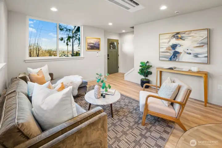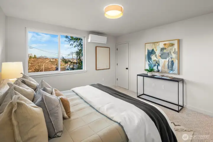 Situated in the heart of Wallingford, this rare standalone single-family home offers independent street frontage and elevated views across the neighborhood towards the Ship Canal and the surrounding cityscape. The bright open concept main level features expansive windows and a refined kitchen with full-height Abodian cabinetry, premium appliances, and modern finishes designed for everyday ease and effortless hosting. The efficient two bedroom layout offers comfortable separation, highlighted by a spacious primary suite with a spa-inspired bathroom. An attached private garage and dedicated driveway provide rare off street parking and added storage flexibility. Thoughtfully designed on its own lot, this brand new residence is not subject to an HOA or condominium, a rarity for this type of home in the city. Located blocks from Wallingford dining, Gas Works Park, Lake Union, the Burke-Gilman Trail, and major commuter routes, plus positioned within John Stanford International School’s geo zone.