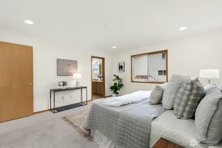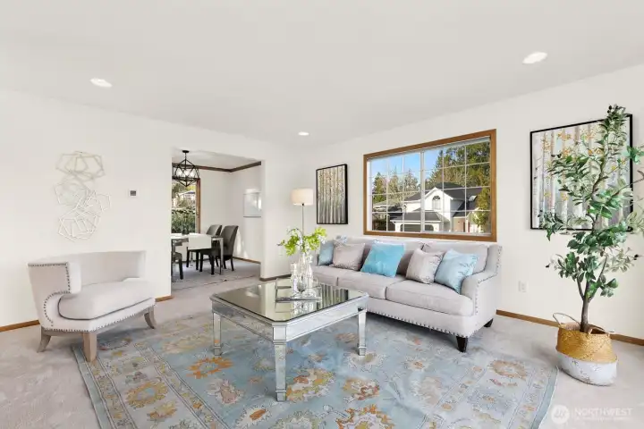 Beautifully refreshed Sammamish home with stunning Cascade Mountain views! Nestled in a desirable Plateau neighborhood, this impressive residence welcomes you with a grand arched front entry and dramatic floor-to-ceiling windows along the staircase. Vaulted ceilings and expansive windows throughout fill the home with abundant natural light, creating a bright and inviting atmosphere. Highlights include a formal living room showcasing breathtaking mountain views and a spacious dining room with a new light fixture. The kitchen features a newly installed gas line connection, brand-new 5-burner gas range, new range hood, and stainless steel dishwasher and refrigerator (2025). It flows seamlessly into the breakfast nook and generous family room, which opens to the backyard patio—perfect for everyday living and effortless entertaining. Upstairs, the spacious master suite offers newly added recessed lighting, a new shower door, and a walk-in closet. Three additional bedrooms and a full bath provide ample space for everyone. Recent updates include new carpet, fresh interior paint, and new gutters. Major system improvements include a new water heater (2025), furnace (2022), and exterior paint (2020). Air conditioning, a two-car garage, and a fully fenced backyard add comfort and convenience. Easy commute: A short drive to light rail and SR-520. Move-in ready and pre-inspected, this home is ideally positioned to capture views you’ll love & create lifelong memories you’ll treasure.