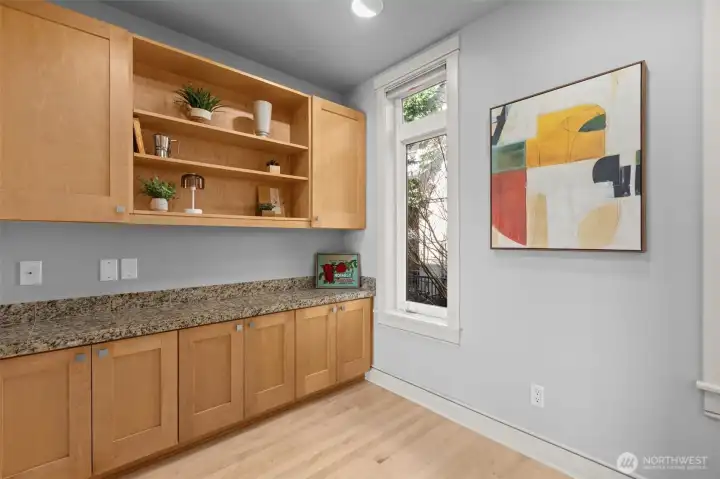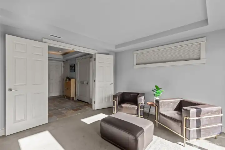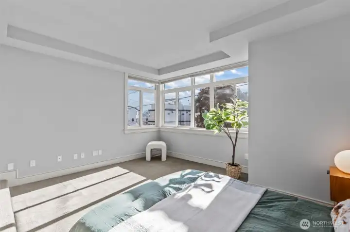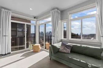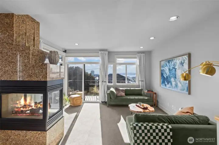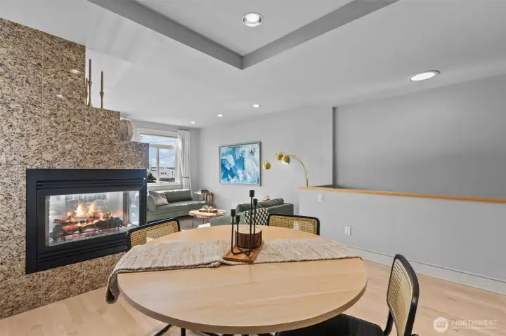 Welcome to Toscano, a boutique Queen Anne community where timeless architecture meets effortless in-city living. Residence 116 features a rare three-level reverse floorplan, placing the main living spaces on the top floor to capture beautiful natural light and outlooks. The upper level offers an open kitchen, living, and dining area with hardwood floors, a gas fireplace, breakfast nook, and seamless flow for entertaining.The middle level hosts the serene primary suite with a walk-in closet and spa-inspired bath. The entry level includes a private en-suite bedroom plus a flexible second room ideal for a guest space, office, or media. An excellent layout for separation of space. Two secure parking spaces sit just steps from the second-floor building entrance, offering exceptional convenience.Enjoy private outdoor space, in-unit laundry, fresh paint, and thoughtful updates throughout. Toscano is a boutique 13-residence community near Seattle Center, Climate Pledge Arena, SLU, transit, cafés, and the best of Queen Anne. A standout low-maintenance alternative to single-family living in one of Seattle’s most desirable neighborhoods.