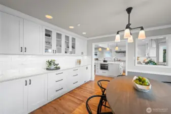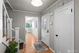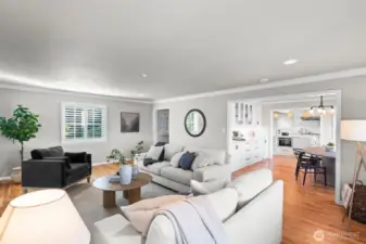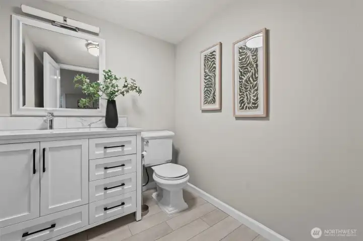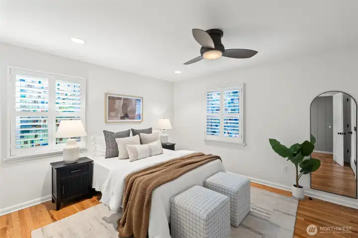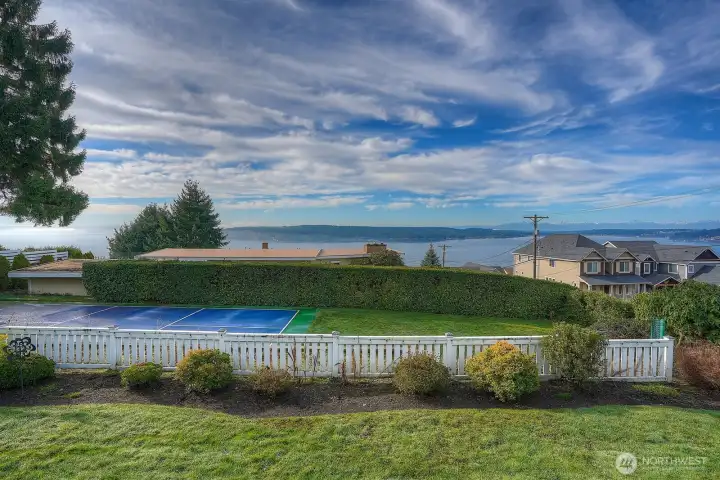 Charming, restored 1940s home showcasing expansive views of the Puget Sound and Olympic Mountains. Tastefully remodeled throughout, this home blends classic character with modern updates. The gourmet kitchen features Bosch and Wolf appliances, a 6-burner gas range, newer cabinetry, countertops, and backsplash—plus sweeping views from every kitchen window. Refurbished hardwood floors run throughout, leading to a spacious dining room with built-in cabinets for added storage. The inviting living room centers around a beautiful gas fireplace, while shutter blinds add timeless style throughout the home. The main-floor bathroom has been fully updated with a new shower, tile, and vanity. One bedroom is located on the main level, with two additional bedrooms upstairs and an extra bonus room. The basement offers yet another bonus room, half bath, laundry room, and ample storage. Outside, enjoy a large corner lot with mature landscaping, a detached fully finished garage with epoxy floors, and a huge deck perfect for taking in the views. Step down to the lower terrace and your own private pickleball/sport court. Ask your agent for a copy of the pre-inspection.