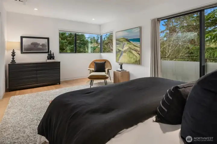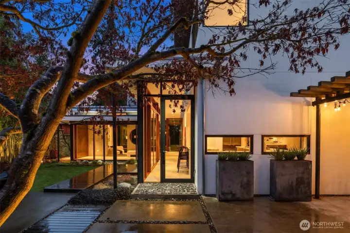 The Glass Gallery House is a rare PNW luxury retreat—classic from the street, then a jaw-dropping modern reveal within. Just steps from the 230-acre Washington Park Arboretum, this sculptural, design-forward residence blends warm, refined minimalism where every line feels intentional & every view feels curated. Designed by notable PNW architect Patrick William Donnelly, this fully custom home delivers gallery-like interiors w/ kerfed molding, concrete elements, and soaring walls of glass blur the line between in & out. Arrive via a Japanese garden-inspired path framed by mature birch trees to a dramatic entry—an architectural moment—featuring a stunning doug fir pivot door & radiant limestone floors. Inside, walnut-wrapped expanses of glass open to a private courtyard sanctuary w/ multiple entertaining spaces & a tranquil water feature. The sunken living room stuns w/ floor-to-ceiling glass & sculptural concrete fireplace. A Calacatta marble kitchen w/ dining space performs like a showpiece, pairing custom walnut cabinetry w/ seamless indoor-outdoor flow. A floating open staircase, crowned by an expansive skylight, bathes all 3 levels in natural light. Upstairs: a tree-canopy primary suite w/ spa-caliber marble bath plus a 2nd ensuite BD. Lower level offers bedrooms, a media room, & flex space. Detached 480 SF carriage house w/ sep. entry & EV-ready garage. An ideal launch point for commuting w/ quick access to DT Seattle & major Eastside hubs: Bellevue, Kirkland & Redmond.