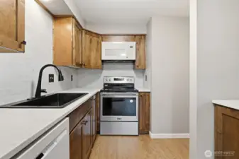 Located in the gated Chintimini Condominiums in Cascade Park, this ground floor condo offers comfortable single level living in a quiet, well maintained setting. A private entry and a single car garage just steps from the front door add ease and functionality to everyday life.The interior has been completely updated with new cabinets, countertops, appliances, an updated bathroom, and fresh paint throughout. Laminate flooring runs through the living areas and bedroom, and a wood burning fireplace anchors the main living space. Sliding doors open to a private back patio that looks out to common green space, creating a relaxed place to enjoy the outdoors.Interior laundry and a practical layout make the home easy to live in, while the ground floor location eliminates stairs and supports long term comfort. Conveniently located near shopping, dining, entertainment, and I-205, this home offers a simple, well balanced lifestyle with the benefit of move in ready updates.