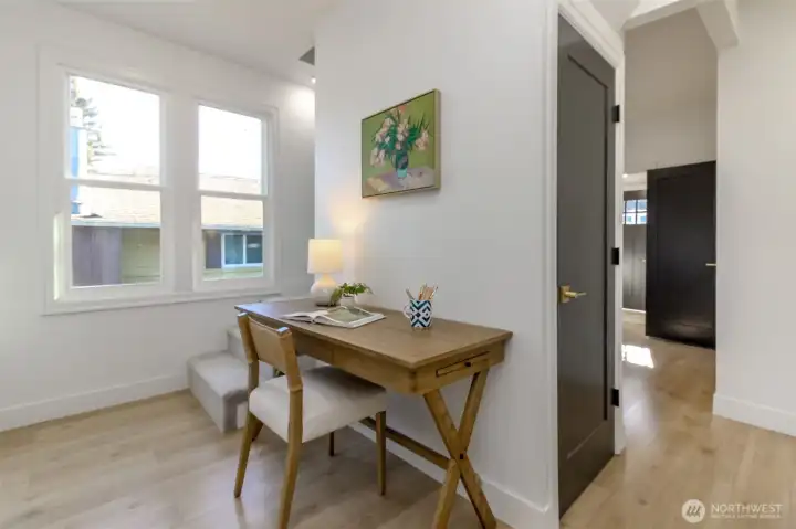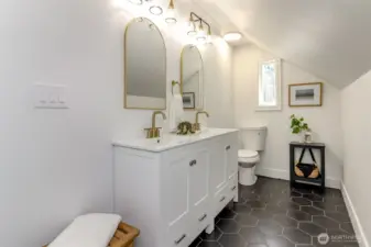 Completely transformed 1915 charmer with everything new! Located in a quiet, established neighborhood, this stunning home beautifully blends timeless character with modern comfort. Tall ceilings and abundant natural light highlight the thoughtful updates throughout. The brand-new kitchen shines with all-new cabinetry, appliances, and stylish finishes, flowing seamlessly into refreshed living spaces featuring new floors, doors, trim, lighting, and paint. Gorgeous, fully updated bathrooms offer designer touches and a clean, modern feel. Upstairs you’ll find three spacious bedrooms, with a giant fourth bedroom on the main level offering flexible use for guests, an office, or bonus space. Stay comfortable year-round with energy-efficient Envi wall-mounted panel heaters — a safe and effective heating solution. Major updates include a new roof, windows, gutters, water heater, and more. Outside, enjoy a peaceful backyard perfect for relaxing or entertaining, plus a detached garage for added convenience. Truly nothing left to do but move in.