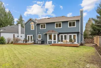 Located on a quiet cul-de-sac, this extensively renovated 5-bedroom, 2.5-bath home offers over $300K in quality upgrades and a layout designed for both function and flow. Formal living and dining rooms provide defined spaces for hosting, while the open-concept kitchen anchors the home with two custom islands, quartz countertops, soft-close cabinetry, stainless steel appliances, double ovens, and an industrial-grade hood. The adjacent family room with gas fireplace opens through French doors to an expansive deck and a level 11,000+ sq ft backyard—ideal for outdoor living. The primary suite features a luxurious ensuite bath, creating a comfortable private retreat. Conveniently positioned for easy access to Redmond’s tech corridor, including Microsoft and Meta, as well as nearby retail and dining. Located within highly regarded Sammamish schools, this home offers a strong combination of space, updates, and commuter efficiency.
