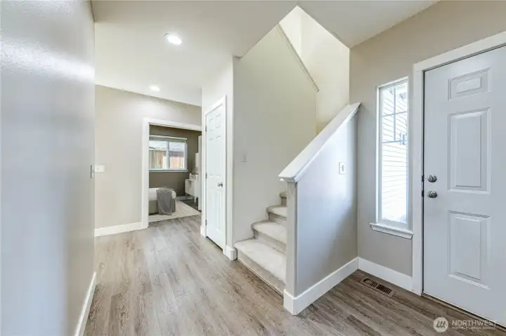 Welcome home to this beautifully updated Lynnwood charmer in ideal location! Pride of ownership shows in this one-owner home with tons of upgrades and outstanding condition throughout. Kitchen fully remodeled in 2025, complete with Cambria quartz counters, subway tile backsplash, and new appliances. Sleek LVP flooring, cozy gas fireplace, and updated bath on main level. New HVAC with central A/C, installed in 2023! Spacious floorplan featuring bedroom (or your work from home office?) on main, three more spacious bedrooms upstairs, and enormous family room up as well! Luxuriate in your spacious primary suite with vaulted ceilings, walk in closet, and huge private bath. Relax with a glass of wine on the back deck overlooking clean patio & level grass area. Don’t miss the EV charger in the garage, installed in 2024! Quiet Red Oaks neighborhood with three community parks in ideal Lynnwood location. Close to shops, restaurants, light rail, park & ride, great schools, and all commuter routes! Pre-inspection attached.