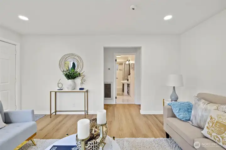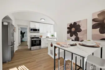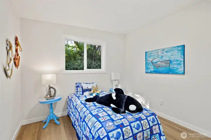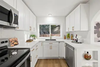 Welcome to this beautiful cozy remodeled home minutes from all the offerings of Green Lake. Step inside to find a large living room with LVP flooring that flows throughout the home. Kitchen with Quartz counter tops, shaker cabinets, SS appliances and a nice deep sink. Cozy dinning area with the original 40's built in shelves. Nice sized deck off kitchen offers privacy to enjoy the long summer days. Side alley for extra parking and access to garage. Park inside or use for hobbies. New transferable warranty roof just installed and new windows. Fully fenced yard. Close to freeways, shopping, Green Lake, and Northgate light rail station.