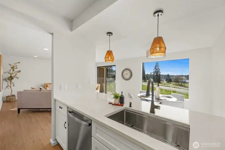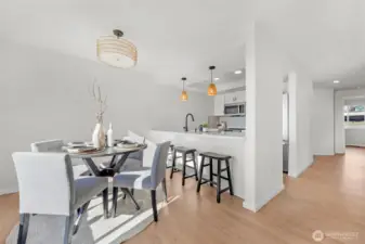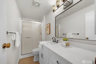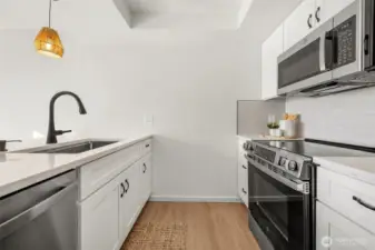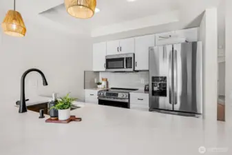 Discover the perfect balance of modern style and serene lakeside charm in this tastefully updated second-floor retreat at Lake Ballinger Village. Bathed in natural light, the spacious living area offers a warm, inviting atmosphere enhanced by recent high-end upgrades, including LVP flooring, LED lighting and fresh interior paint. The heart of the home is a stunningly remodeled kitchen, featuring custom cabinetry and elegant quartz countertops designed for both daily living and effortless entertaining. All new stainless appliances and a breakfast bar! Ideally positioned directly across from the water, this home invites you to enjoy a lifestyle of recreation, from morning strolls around the park to swimming and fishing on Lake Ballinger. You'll enjoy a dedicated parking space, additional private storage, and a location that offers unmatched connectivity—just minutes from I-5 and the Light Rail station, shopping and amenities. Situated within the acclaimed Edmonds School District, this move-in-ready gem provides a rare opportunity to enjoy a comfortable, updated home in a vibrant waterfront community.