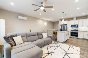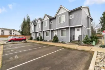 Beautifully appointed three-bedroom condominium offering modern comfort, thoughtful upgrades, and exceptional convenience. This home welcomes you with a charming front porch and opens into a bright interior featuring 9-foot ceilings and a spacious, flowing layout. The open-concept living and dining areas connect seamlessly to a well-equipped kitchen complete with stainless steel appliances, creating the ideal space for both everyday living and entertaining. Designed with comfort and efficiency in mind, the home includes a mini-split heat pump providing both heating and air conditioning, along with smart switches for modern ease and convenience. The primary suite feels like a private retreat, highlighted by a stunning floor-to-ceiling tiled shower and generous space to unwind. Two additional bedrooms offer flexibility for guests, a home office, or hobbies. Set within a community that offers ample parking and welcoming green space, this location provides quick access to downtown amenities and I-5 for an easy commute. Stylish finishes, smart upgrades, and low-maintenance living combine to make this condo an exceptional opportunity.