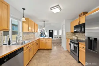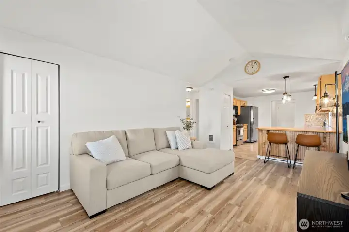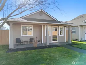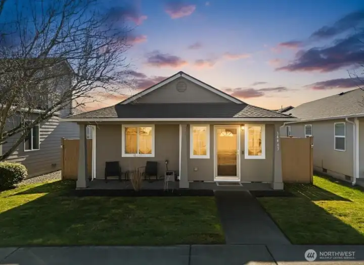 This beautifully maintained 2-bedroom, 2-bath home with a covered front porch offers comfort, convenience, and thoughtful updates throughout. Enjoy brand new LVP flooring that adds modern style and durability to the living spaces. The spacious primary suite features a walk-in closet and private full bath. An oversized 1-car garage provides extra storage and low maintenance yard offers privacy and room to relax or entertain. HOA covers low maintenance septic. Located near community parks, sidewalks, and walking trails, with Yelm Family Medicine just down the street and easy access to JBLM and downtown shopping. Pre-inspected for peace of mind and ready to call home!