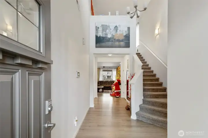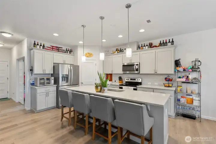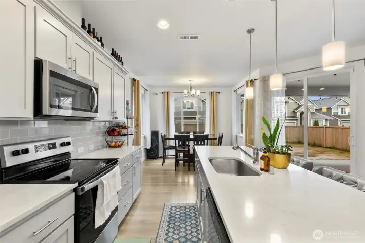 Welcome home to this beautiful newer-built residence, located on a quiet street with no through traffic—an ideal place to settle in and unwind. A bright and inviting foyer with high ceilings and abundant natural light welcomes you inside. The open-concept main level is thoughtfully designed for both everyday living and entertaining, offering seamless flow for gatherings and memorable moments.The gourmet kitchen is a true highlight, featuring quartz countertops, stainless steel appliances, ample cabinetry, and a spacious walk-in pantry—perfect for hosting and daily use alike. A dedicated main-floor office provides a convenient and private space for working from home.Step outside to a low-maintenance, fully fenced yard ideal for summer BBQs, relaxing evenings, and pets. Upstairs, a versatile landing area offers space for a reading nook, play area, or creative retreat. The primary bedroom serves as a peaceful escape, complemented by a spa-like primary bath with an oversized soaking tub.Additional bedrooms are generously sized, providing flexibility and comfort. Modern features such as a tankless hot water heater and air conditioning ensure year-round comfort and efficiency. Conveniently located close to shopping, dining, and freeway access for easy commuting, this home offers the perfect blend of comfort, style, and convenience.