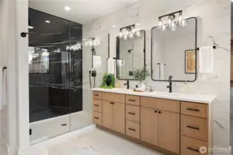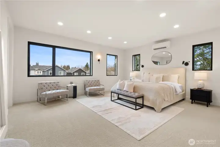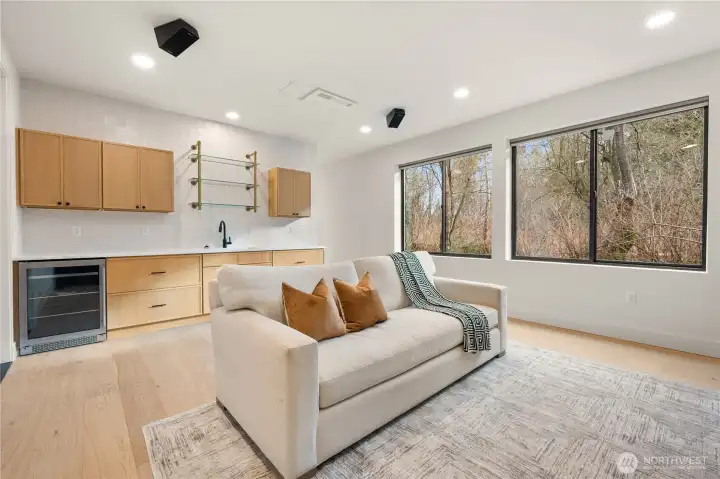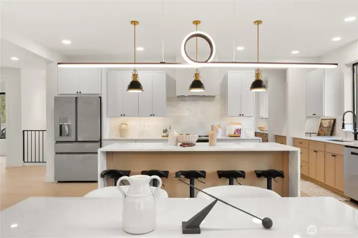 Experience the pinnacle of effortless luxury in this sun-drenched sanctuary, perfectly positioned within the highly coveted North Shore School District. Tucked away in a private setting with No HOA, this estate offers a rare combination of high-end finishes and ultimate convenience. Step inside to discover "insane" natural light cascading across gleaming hardwood floors. The heart of the home is a culinary masterpiece featuring top-of-the-line Cafe appliances and stunning marble waterfall countertops. Whether you are working from home in one of the two dedicated offices or entertaining, the flow is impeccable. The lower level is a marvel of versatility. Currently configured as a state-of-the-art home cinema with professional audio/video and a full wet bar, this space is easily adaptable as a luxe mother-in-law suite. Fitness enthusiasts will appreciate the private home gym, while the oversized bedrooms offer a true retreat for every member of the household. This is a true "Everything Included" sale—washer, dryer, and all AV equipment convey. Perhaps most impressive is the peace of mind: 5 years of professional landscaping maintenance is included, ensuring your grounds remain pristine without lifting a finger. With a spacious driveway, EV charging, and a location that is second to none—3 minutes to Fred Meyer, 10 minutes to Alderwood Mall, and seamless access to I-5 and 405—this is not just a home; it is a lifestyle upgrade.