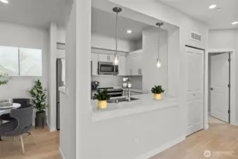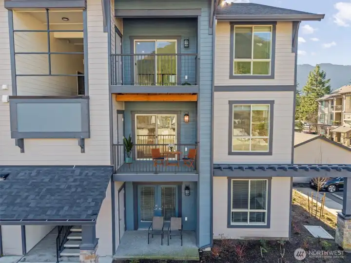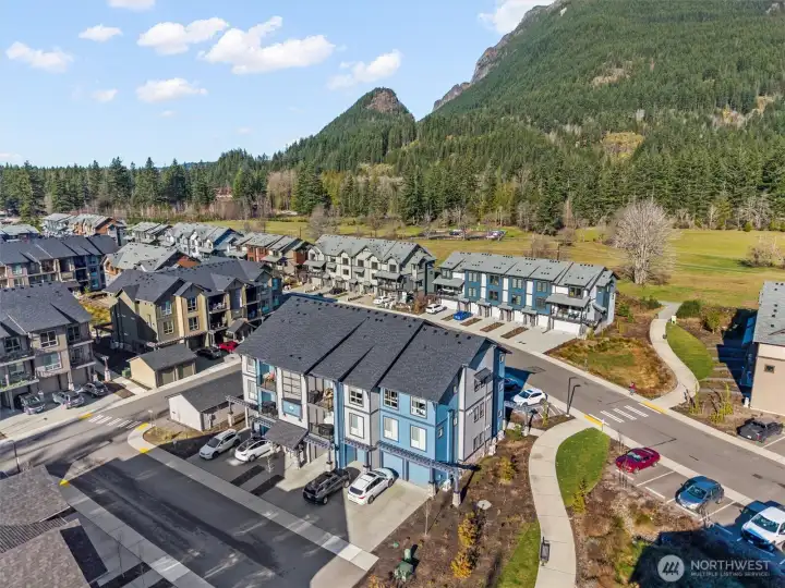 Welcome to Timberstone, where modern luxury meets an unbeatable location and outdoor adventure is right outside your door. This 2024-built corner-unit home offers elevated living with an open-concept floorplan, 9-foot ceilings, luxury vinyl plank flooring throughout, quartz countertops, stainless steel appliances, and abundant natural light. Enjoy your morning coffee or dine alfresco on the patio while taking in the fresh air and sweeping mountain views. Parking is effortless with your private garage, an additional reserved space, and ample guest parking. Just steps away, the community park features volleyball and pickleball courts, along with a covered picnic area. With easy access to the Snoqualmie Valley Trail and River—and just blocks from the shopping, dining, and amenities of downtown North Bend—this home offers the perfect blend of comfort, convenience, and Northwest lifestyle. Pet friendly complex with no rental cap.