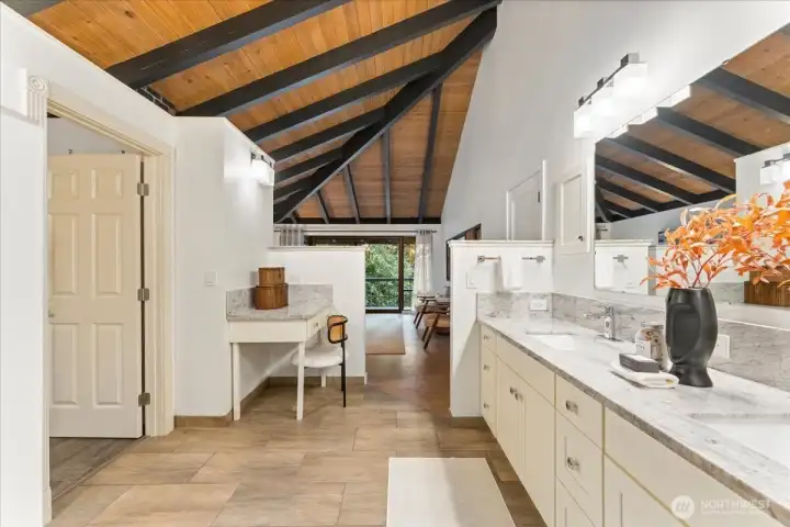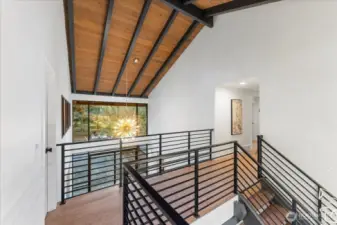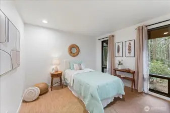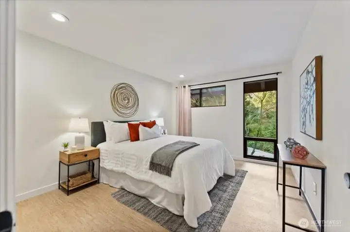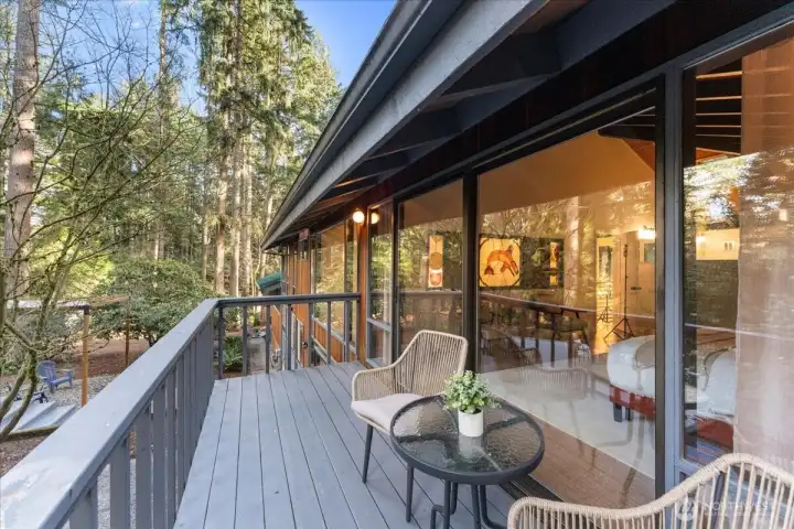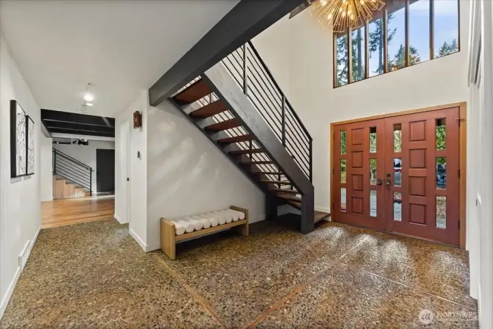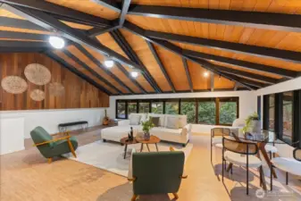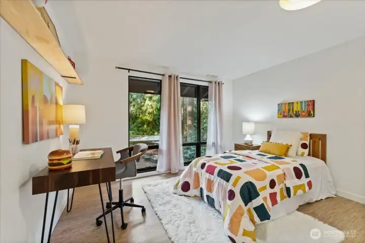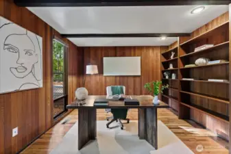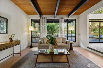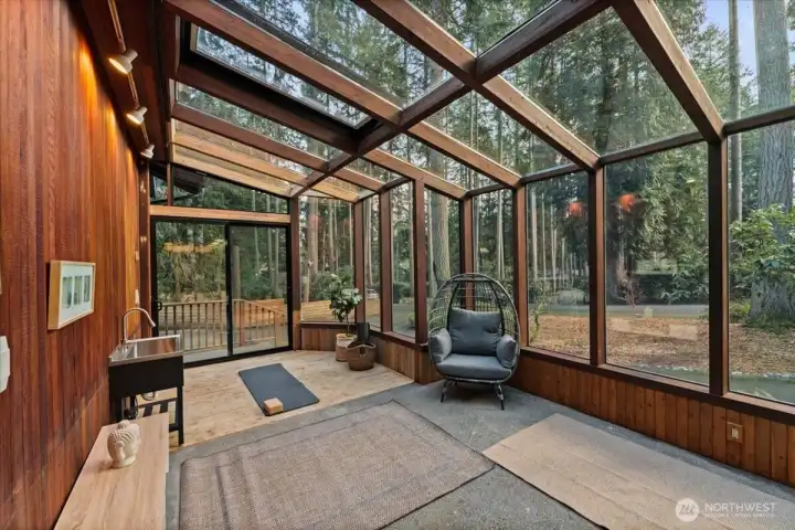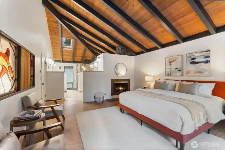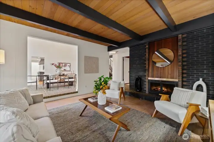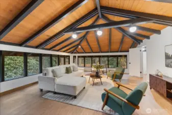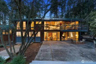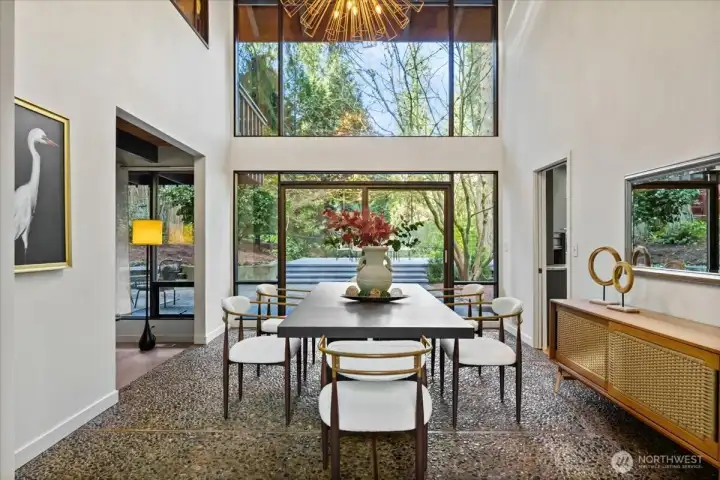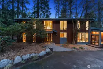 Set on a shy acre in sought-after Bridle Trails, this custom Midcentury Modern home is defined by soaring ceilings, expansive windows, and a seamless connection to the surrounding natural landscape. Light-filled interiors and clean architectural lines create a sense of openness and calm throughout the home. An impressive entry leads to a flowing floor plan designed for both everyday living and entertaining, featuring generous gathering spaces, a chef’s kitchen, two dining areas, and an expansive bonus room. The airy solarium extends the living space outdoors, while the private backyard and patio are framed by mature rhododendrons, cedars, and firs, offering a rare sense of tranquility and privacy. Thoughtfully maintained and tastefully updated, the home includes a remodeled solarium and bathroom, cork flooring, and modern lighting. Ideally located just a short walk to Bridle Trails State Park, this property combines serene Northwest living with easy access to Bellevue, Kirkland, and Redmond, all within the award-winning Bellevue School District.