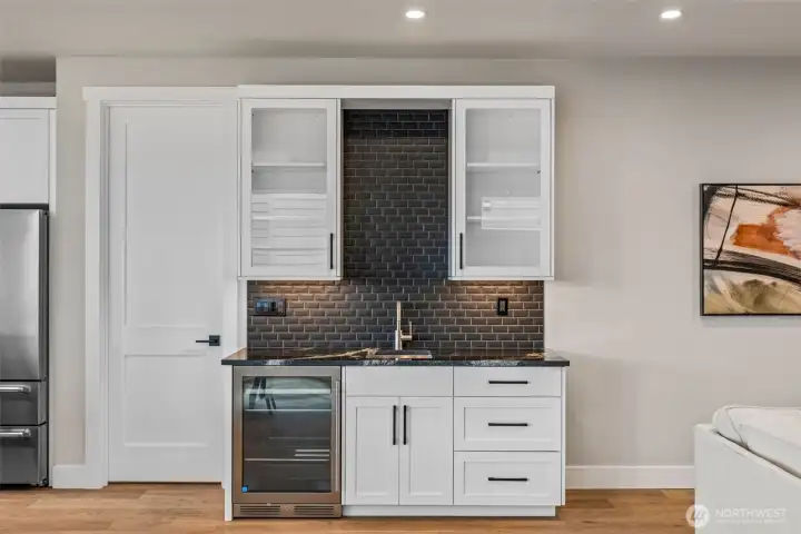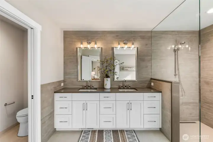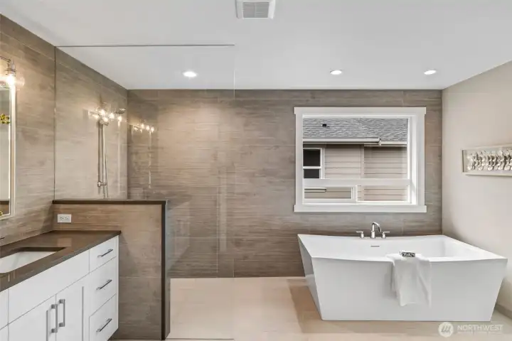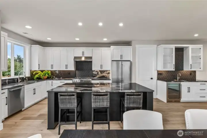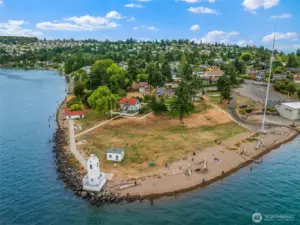 Ahhh...life one block to the beach with Sound views & 2 parks-including pickleball + private boat launch! Add in the rarity of new construction in this boutique area of Lower Browns Point & you can just FEEL yourself exhale. Gorgeous, high end, thoughtful finishes & generous spaces are offered in this 2-story home, starting with wide plank oak flooring & 8 ft doors throughout main level. Incredible, open great room has floor to ceiling fireplace, flanked by rich walnut; spacious dining with room for 10-11; Chef's kitchen has Bertazzoni appliances (including 36" gas range), 10 ft island & covet-worthy pantry, wine/coffee bar with wine refrigerator. Sumptuous primary suite has view deck & amazing sunsets. Huge, lush yard, fenced + sprinkler system. Soft modern lines, beautiful workmanship.