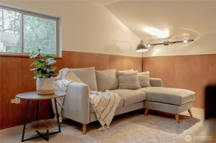 Welcome to this charming Richmond Highlands home offering space, functionality, and opportunity. As you enter, you’re welcomed by mid-century character and a cozy fireplace anchoring the living room. The dining area flows into the galley kitchen—ready for your personal vision and updates. Just off the kitchen you’ll find the laundry room and stairs leading to the 4th bedroom, currently transformed into a spacious bonus retreat complete with a fantastic wet bar—perfect for entertaining. On the opposite side of the home are three bedrooms and a full bathroom, all tied together by beautifully refinished oak hardwood floors. Situated on a generous 8,257 sq ft lot, the fully fenced backyard offers room to garden, or explore future expansion possibilities. Recent updates include a brand new roof, electrical panel, new garage door/motor, new carpet in all four bedrooms, and fresh interior paint. Located in desirable Shoreline, you’ll enjoy close proximity to beaches, parks, schools, commuter routes, and everyday amenities while still maintaining a sense of privacy and space.
