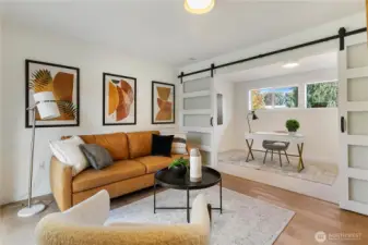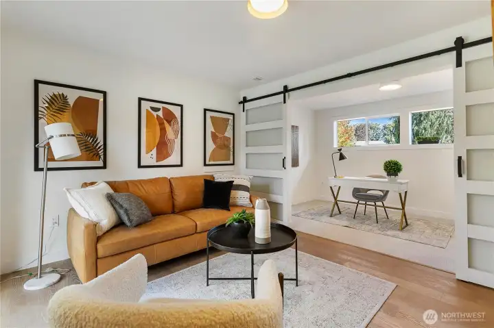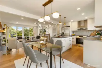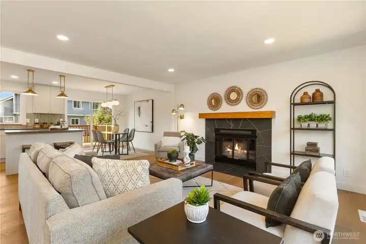 Perfectly positioned in the heart of Finn Hill, this striking home sits on a quiet cul-de-sac lined with wide streets, nearby parks and top-rated schools. New hardwoods and railings lead to the main floor’s chic new kitchen with sleek cabinetry and sophisticated finishes. The dining area with deck access adjoins the light-filled living room - perfect for entertaining. The primary retreat with walk-in closet and ¾ spa-like ensuite is beautifully finished. With two additional bedrooms and gorgeous full bath on one level create the ideal layout. The lower level offers incredible flexibility with a fourth bedroom or office adjoining the bonus room with yard access. A stunning full bath updated with all-new finishes and fixtures completes the space. Don’t miss the newly finished, heated garage/flex space—an incredible bonus area ready to adapt to your lifestyle, whether it’s a home gym, game room, creative studio or the ultimate hangout. Updated and permitted throughout for piece of mind and long term value! The expansive, freshly landscaped yard with cozy firepit with string lights invites you to garden, gather, or simply relax. Minutes to parks, beaches, shops, commuter routes and more!