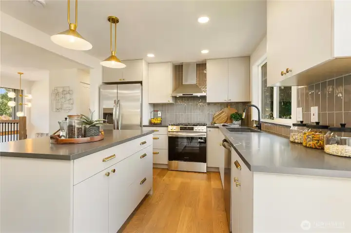 Perfectly positioned in the heart of Finn Hill, this striking home sits on a quiet cul-de-sac lined with wide streets, nearby parks and top-rated schools. New hardwoods and railings lead to the main floor’s chic new kitchen with sleek cabinetry and sophisticated finishes. The dining area with deck access adjoins the light-filled living room - perfect for entertaining. The primary retreat with walk-in closet and ¾ spa-like ensuite is beautifully finished. Two additional bedrooms and gorgeous full bath on one level create the ideal layout. The lower level offers incredible flexibility with a fourth bedroom or office adjoining the bonus room with yard access. A stunning full bath updated with all-new finishes and fixtures completes the space. Updated and permitted throughout for piece of mind and long term value! The expansive, freshly landscaped yard with cozy firepit invites you to garden, gather, or simply relax. Minutes to parks, beaches, shops, commuter routes and more!