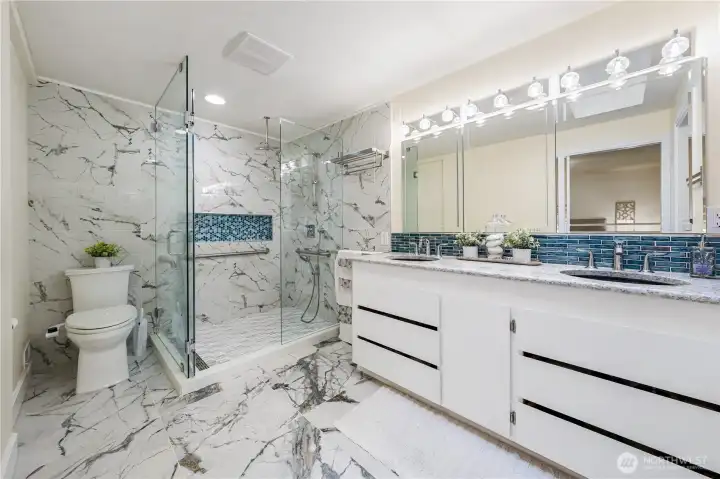 Welcome to a beautifully modernized home in the prestigious Sahalee Estates golf community, where timeless design meets modern comfort and exceptional curb appeal. Fresh interior paint and an inviting open floor plan create light-filled living spaces that flow seamlessly from the expansive living room to the formal dining area and open kitchen into the large family room—ideal for everyday living and effortless entertaining. Glass doors extend the living space to a generous deck, perfect for indoor-outdoor gatherings surrounded by mature landscaping. Upstairs, the remodeled primary suite offers a private retreat complete with a cozy fireplace, spa-inspired bath, oversized walk-in shower, and spacious walk-in closet. Two additional bedrooms each feature a private ¾ bath and a walk-in closet, providing comfort and privacy. A main-level bedroom with an adjacent ¾ bath offers flexibility for guests, a home office, or multi-generational living. Updated flooring, stainless steel appliances, and thoughtful modern updates throughout enhance both style and function, while the deep driveway and established low maintenance landscaping complete this exceptional home within one of the area’s most sought-after golf communities.