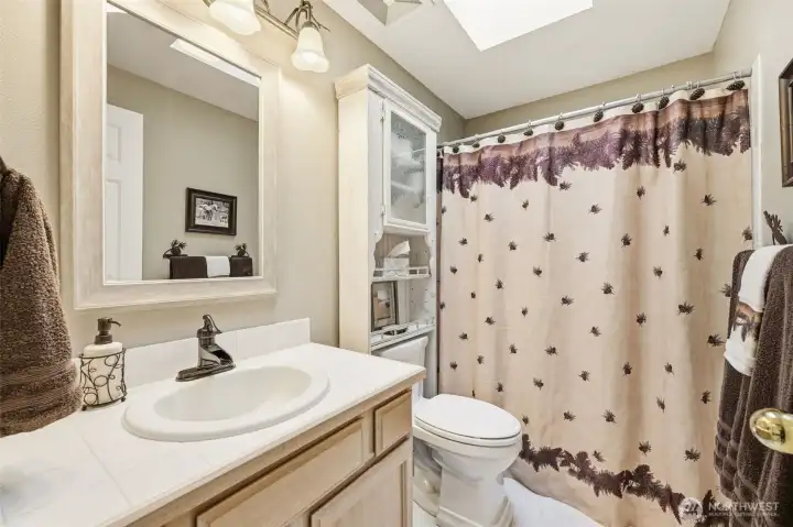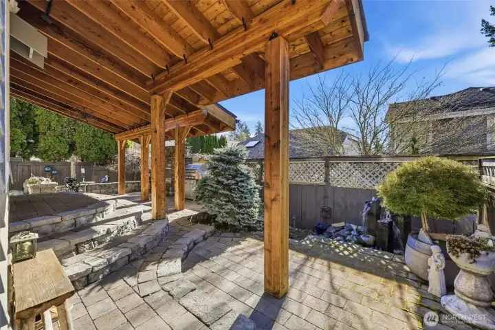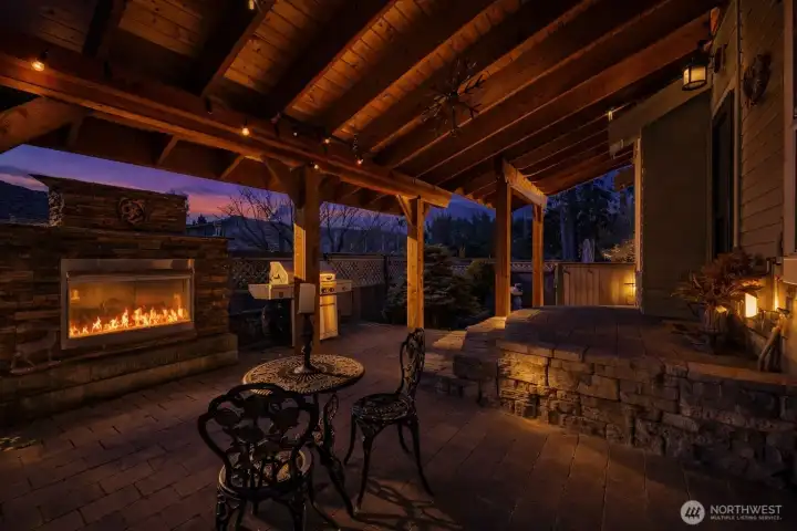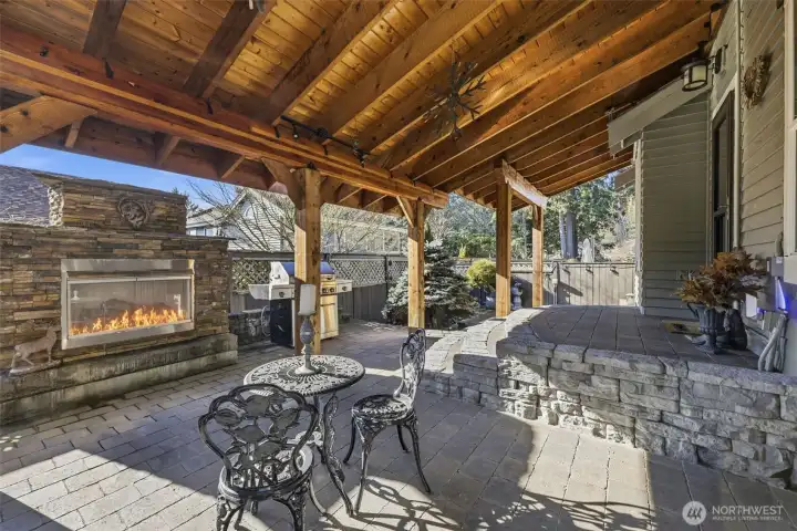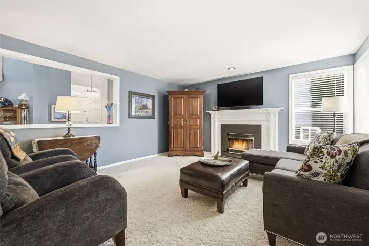 Meticulously maintained and located within the gated University Place community of Danbridge, this light-filled home shines year-round. Soaring cathedral ceilings, walls of windows, and skylights create an airy, uplifting atmosphere throughout. Warm and inviting open living spaces are enhanced by hardwood floors and a cozy gas fireplace, making the home truly move-in ready. The kitchen is both stylish and functional, featuring rich cabinetry, granite countertops, stainless steel appliances, and a generous island—perfect for everyday living and entertaining. The adjoining family room offers comfortable flexibility for relaxing or hosting guests, with a patio door leading to a truly special outdoor space. The covered patio is a one-of-a-kind retreat, complete with an outdoor gas fireplace and multiple water features, creating an exceptionally private and tranquil backyard oasis. Upstairs, the spacious primary suite boasts vaulted ceilings, gas fireplace, a walk-in closet, and a full bath, alongside two additional bedrooms and a full hall bath. Recent updates include a new roof (2016), outdoor patio and roof (2016), new windows (2022), exterior paint (2022), and a new heat pump and hot water heater (2025). The HOA provides low-maintenance living with coverage that includes landscaping, exterior paint, roof care, gutter cleaning, & more. Located in the highly regarded University Place School District, this home offers comfort, privacy, and ease—come experience the good life.