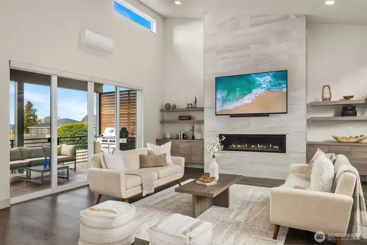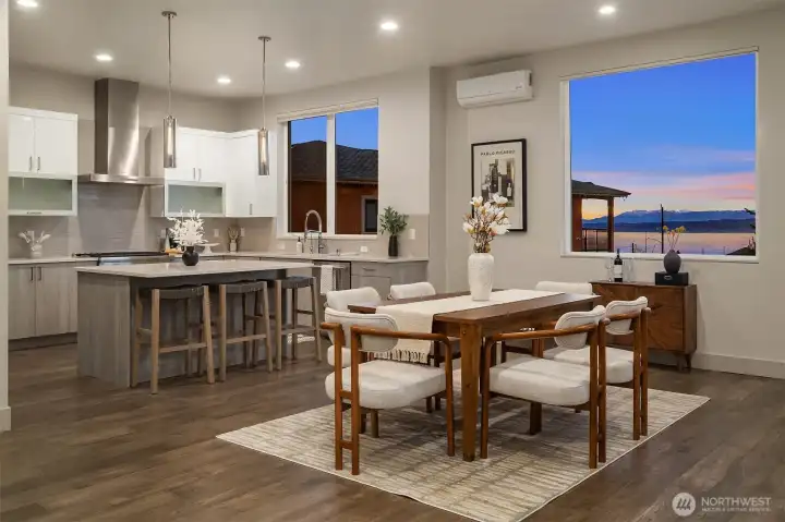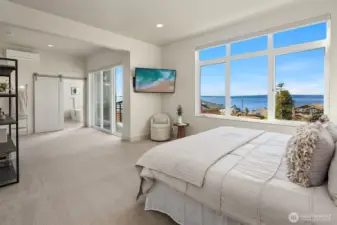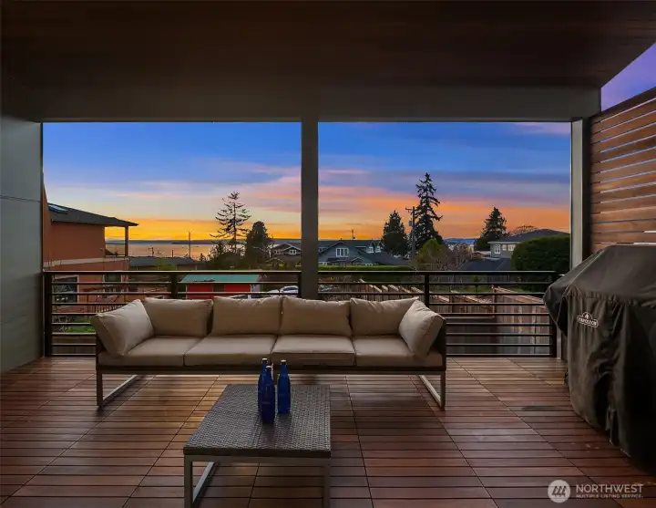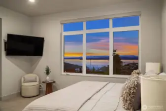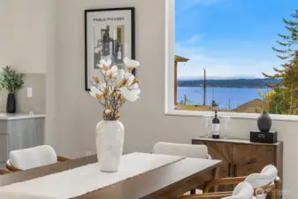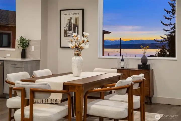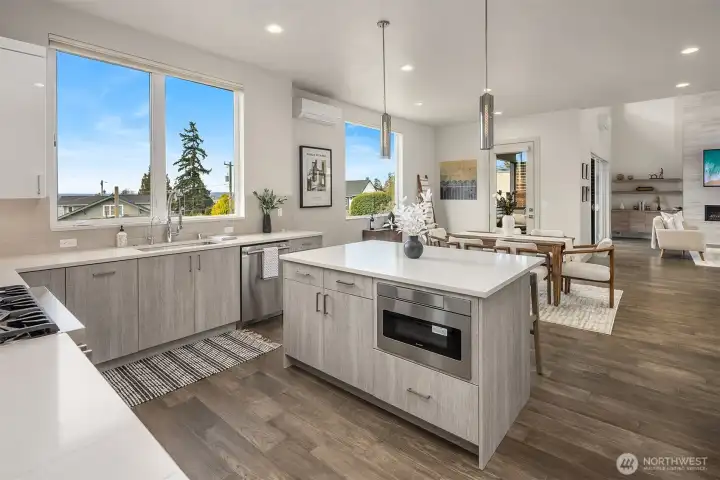 Richmond Beach living w/ stunning views & contemporary style Soaring 2-story entry welcomes w/ striking travertine accent wall. Generous open-concept design maximizes west-facing views of Sound & Olympics. Watch sunsets. Airy & light-filled throughout, main level features wide-plank hardwoods & gas fireplace framed by custom built-ins. Easy access to covered view deck for seamless indoor-outdoor flow. Gourmet kitchen showcases dual-tone flat-panel cabinetry & chef-grade Thermador appliances: 8-burner gas range. Spacious Primary Suite offers private balcony, sitting area, oversized WIC w/ built-ins & spa-like 5-pc bath. Upstairs family room & lower-level rec-room w/ $30K surround sound system w/ KEF in-wall & in-ceiling speakers. Updated landscaping w/ raised garden beds & accent lighting. 2-car garage. Mins to Kings, beach, & downtown Edmonds.