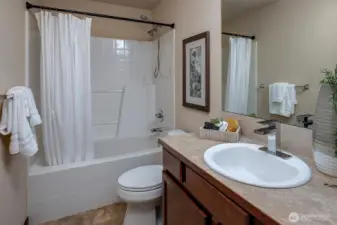 Welcome to this beautifully refreshed Smart Home in the highly sought-after Mill Creek Terrace community. Thoughtfully designed and move-in ready, this residence blends modern luxury with everyday convenience. The centerpiece is a fully renovated, open-concept chef’s kitchen featuring gorgeous quartzite countertops, custom cabinetry with pull-out organization, and new premium appliance suite by Bosch and LG. The freshly painted interior feels bright and contemporary, accented by new contemporary door handles, custom trim, and high-end blinds throughout, including blackout blinds. Enjoy three spacious bedrooms plus a versatile den or optional fourth bedroom, featuring new hardwood flooring, perfect for a professional remote work setup or guest space. The home is fully equipped with a sophisticated smart home and security ecosystem, including a whole-home security system with hardwired cameras, Ring Doorbell, smart lighting, and a MyQ enabled garage with an integrated camera. Movie nights are complete with a pre-wired 5.1 surround sound system. Outside, a private backyard with an extended concrete patio is the perfect setting for morning coffee or summer dinners set to music via hardwired outdoor speakers. The home remains comfortable year-round with central AC. Critical infrastructure upgrades include a new high-capacity water heater, new gutters, and an optimized garage with ceiling storage and professional paint. Don’t miss this tech-forward, turnkey home!