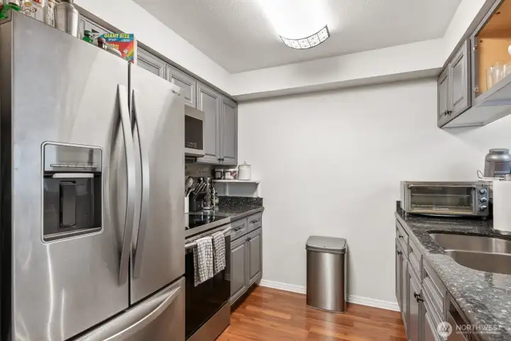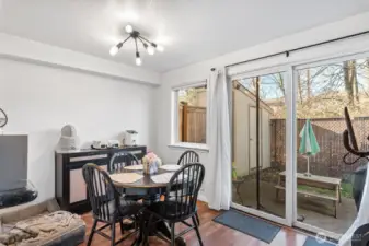 Beautifully updated private end-unit townhome offering rare privacy and functional outdoor space with a fully fenced patio, two storage sheds, and direct access to a large shared backyard area. The main level features a bedroom, hardwood floors, and a bright living room with a wood-burning fireplace, while the kitchen includes granite countertops and updated cabinetry. Upstairs offers two additional bedrooms with flexible use options. No rental cap provides flexibility for both owner-occupants and investors. Convenient I-5 access near shopping, parks, the Interurban Trail, Silver Lake, and McCollum Park, all within the Mukilteo School District. HOA dues include water, sewer, garbage, common area maintenance, two parking spaces including one covered, and mailboxes just outside the unit.