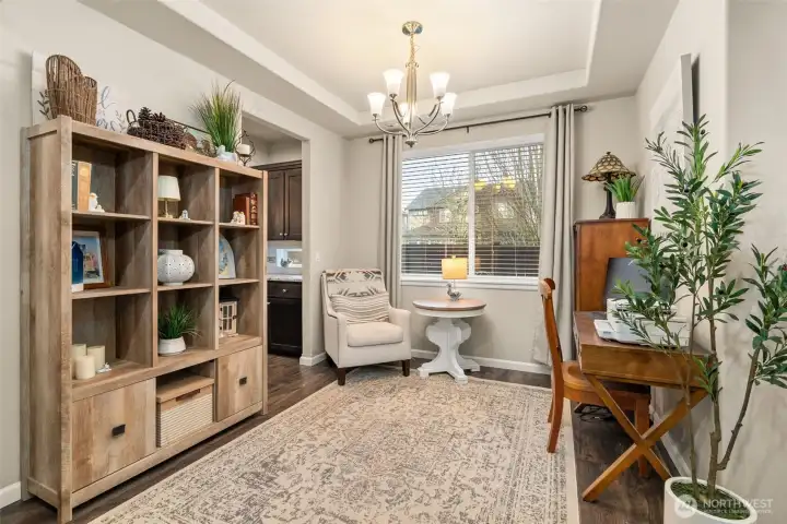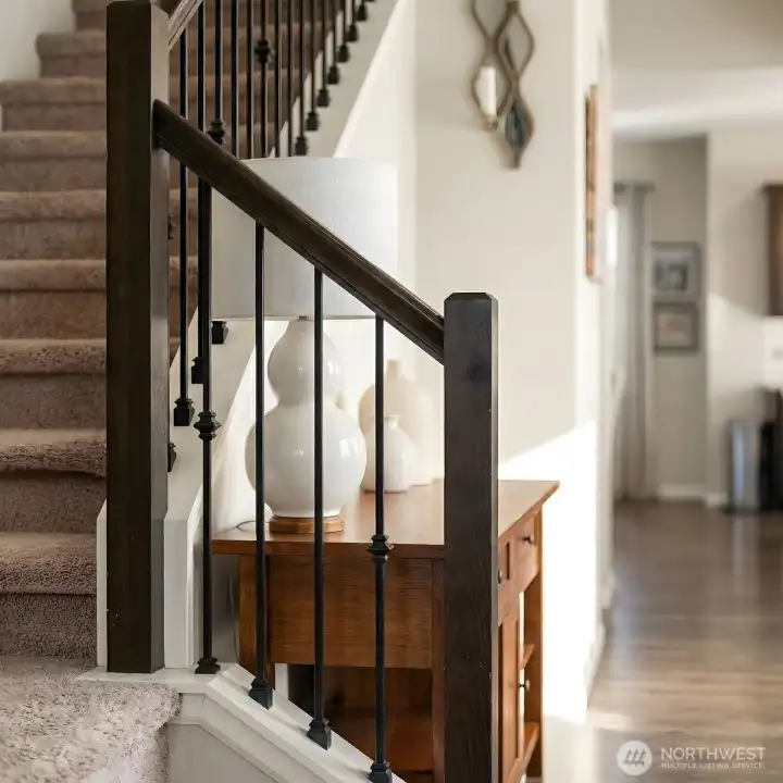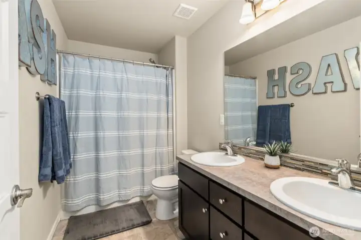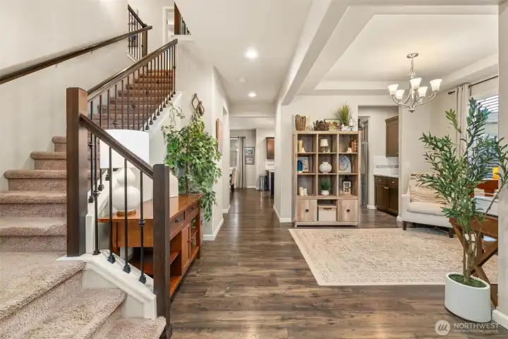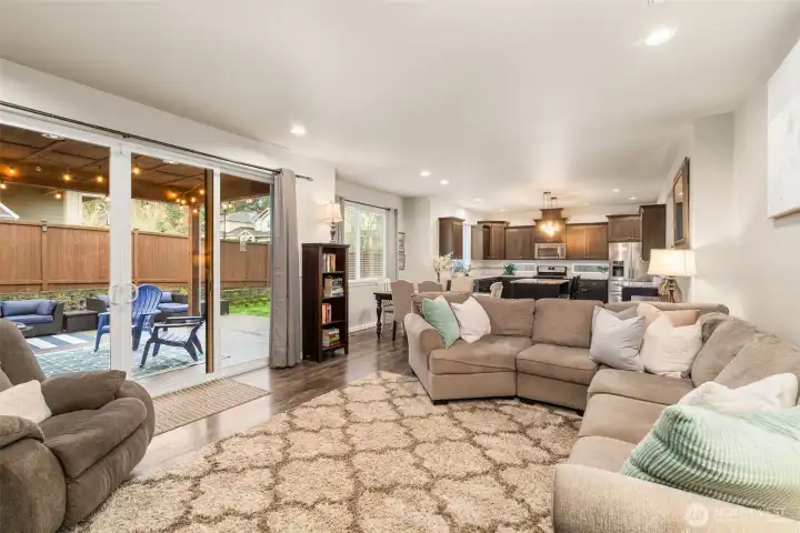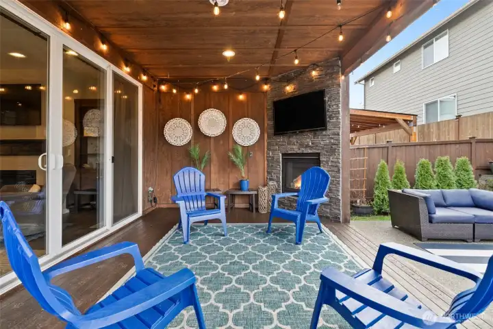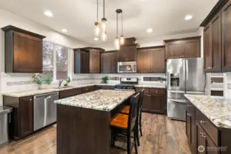 Designed for the way you live today, this 4 bedroom 2.5 bath home offers generous living spaces, flexible rooms, and seamless indoor-outdoor connection in 2728sf. Durable laminate flooring flows through the main living areas, creating a warm and cohesive feel. The kitchen is well appointed with granite countertops, a full tile backsplash, counter level windows, espresso-tone cabinetry, a gas range, and both a butler’s pantry and walk-in pantry—ideal for everyday living and entertaining. The generous living room features a gas fireplace flanked by built-ins and opens to an expansive deck with wood ceilings, a brick-surround outdoor fireplace, and additional patio space for relaxing or gathering. Upstairs, the oversized primary suite impresses with vaulted ceilings, an accent wall, and a spacious bath with dual vanities, soaking tub, and tiled finishes. Three additional bedrooms, a bonus room, and a large utility room with built-ins offer flexibility for work, guests, or hobbies, making this home as functional as it is welcoming. Close to shopping, schools, and easy freeway access to southern and northern destinations including JBLM, this is the whole package!