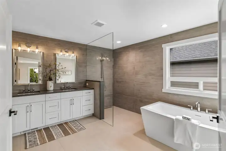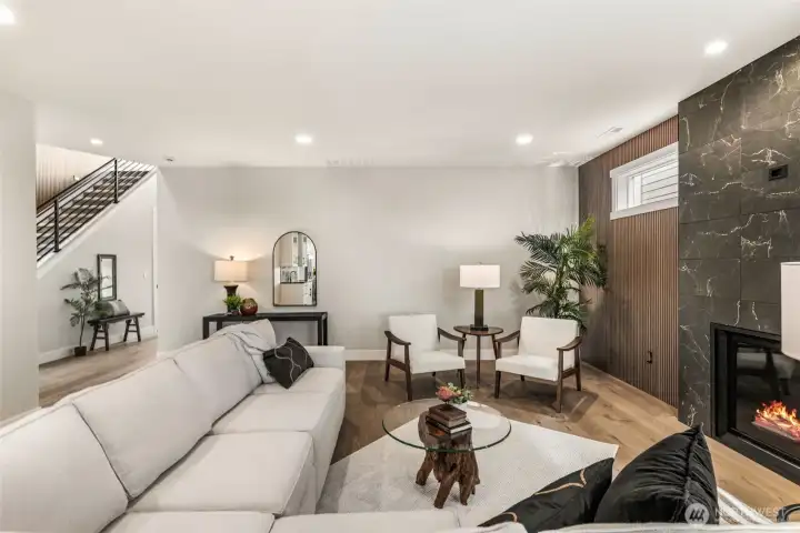 Ahhh...life one block to the beach with Sound views & 2 parks-including pickleball + private boat launch! Add in the rarity of new construction in this boutique area of Lower Browns Point & you can just FEEL yourself exhale. Gorgeous, high end, thoughtful finishes & generous spaces are offered in this 2-story home, starting with wide plank oak flooring & 8 ft doors throughout main level. Incredible, open great room has floor to ceiling fireplace, flanked by rich walnut; spacious dining with room for 10-11; Chef's kitchen has Bertazzoni appliances (including 36" gas range), 10 ft island & covet-worthy pantry, wine/coffee bar with wine refrigerator. Sumptuous primary suite has view deck & amazing sunsets. Huge, lush yard, fenced + sprinkler system. Soft modern lines, beautiful workmanship.