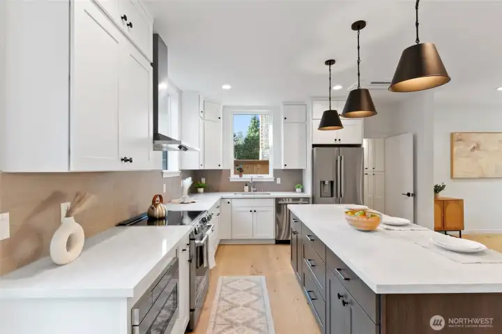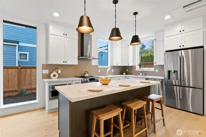 Modern new construction in Pinehurst. This 3 bedroom + office, 2.5 bath home offers an open, light-filled layout - 9' ceilings on the main floor! -- with engineered hardwood floors and a sleek kitchen featuring quartz countertops, white shaker cabinets, an induction/convection range, stainless steel appliances, and a dedicated food pantry plus wine refrigerator. Minisplits throughout provide year-round comfort. Thoughtful spaces include an office, full laundry room, and ample storage. Enjoy the convenience of an attached garage (EV charger!) and a highly walkable location close to restaurants, groceries, and everyday amenities -- two blocks to Safeway and a variety of restaurants and shops on 15th NE, as well as to transit. 2/10 warranty included!