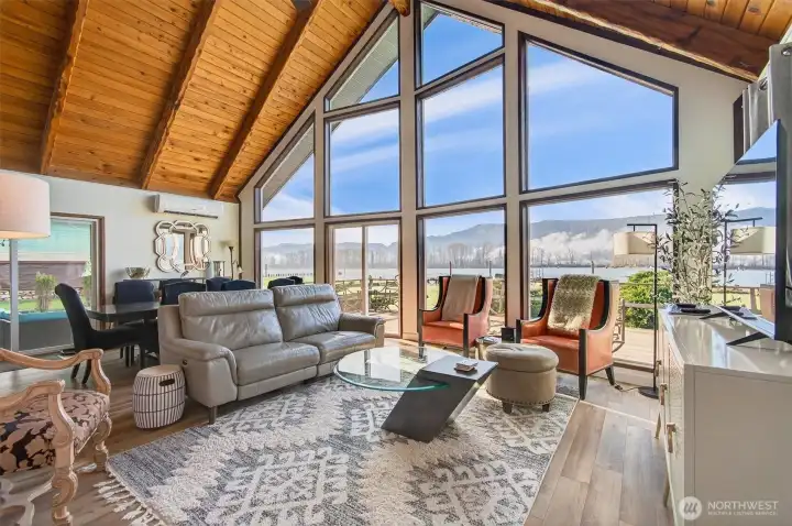 Nothing better than living on the riverfront, waking up in the morning to Sea Lions barking, international ships going past, Osprey and Eagles soaring above you. This all comes with this remodeled home on Puget Sound and sitting on the Columbia River. This home features two bedrooms on the main floor, with a loft for a recreation room and as a third bedroom. Built to take advantage of the sunlight and the river with all new large windows facing south and to the river. Outside is a large level lot for any additional building plans you may have. This property also includes a 10x20 shop, a covered 32 foot RV parking spot, a double carport for cars and a circular driveway for easy in and out driving. For the sportsman, you can fish off the bank or pull your boat up to your own private 45 ft. dock. This is an area known for its fantastic Salmon fishing. Ride your boat 1 hour downstream and throw your crab pots in Baker Bay or head over the bar for Ocean bottom fishing. Or just go to the multitudes of uninhabited Islands in the river for all kinds of exploring and Birdwatching. You will never run out of things to do in this wonderful little corner of the Pacific Northwest. Home comes completely furnished and has been used as a vacation rental.