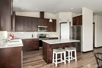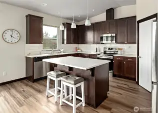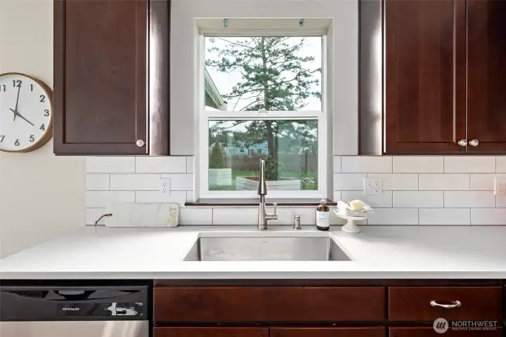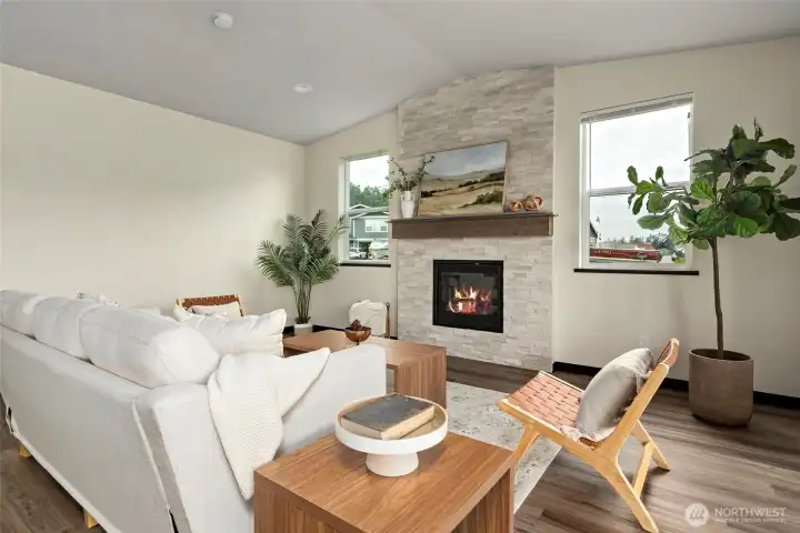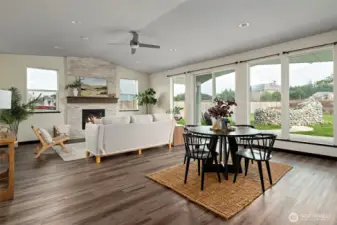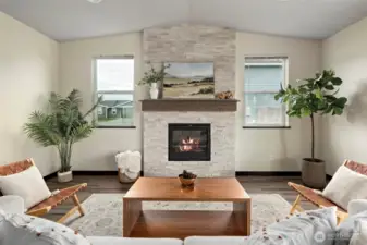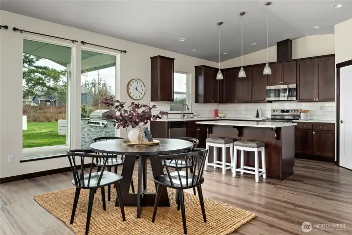 Gorgeous nearly new single story home set on a 1/3 acre lot located just a few blocks from the beach on Penn Cove at Monroe Landing. Beautifully appointed with luxury vinyl plank flooring, great room with vaulted ceilings, gas fireplace, and walls of windows that flood in natural light. The gourmet kitchen features beautiful cabinetry, stainless appliances, quartz counters, walk-in pantry & entertaining island with breakfast bar. Escape to the luxurious primary suite featuring a spacious bedroom with vaulted ceilings, primary bath with dual vanity quartz counters, fully tiled shower, & large walk-in closet. Split floorplan offers two more spacious guest bedrooms plus a nice sized office/den. Enjoy energy efficient heating & cooling for year round comfort with the mini-split ductless system!Entertain year-round on the expansive covered patio with built-in BBQ. Large sunny backyard features a koi pond & offers plenty of room to garden & play. It is time to enjoy Whidbey Island living!!! This turn-key home is a true gem!